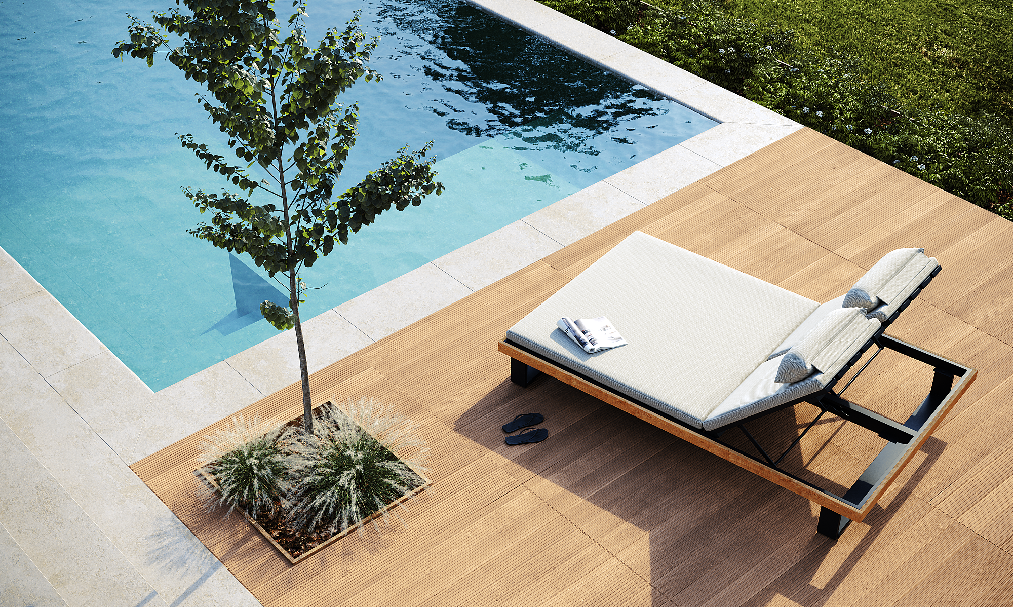 Ten ulubieniec klientów, wykończony tekiem, żyje w zgodzie ze środowiskiem. Połączenie linii bazowych z drewna tekowego klasy A i aluminiowej podstawy emanuje klasą, wspaniałym komfortem i luksusowym siedzeniem.