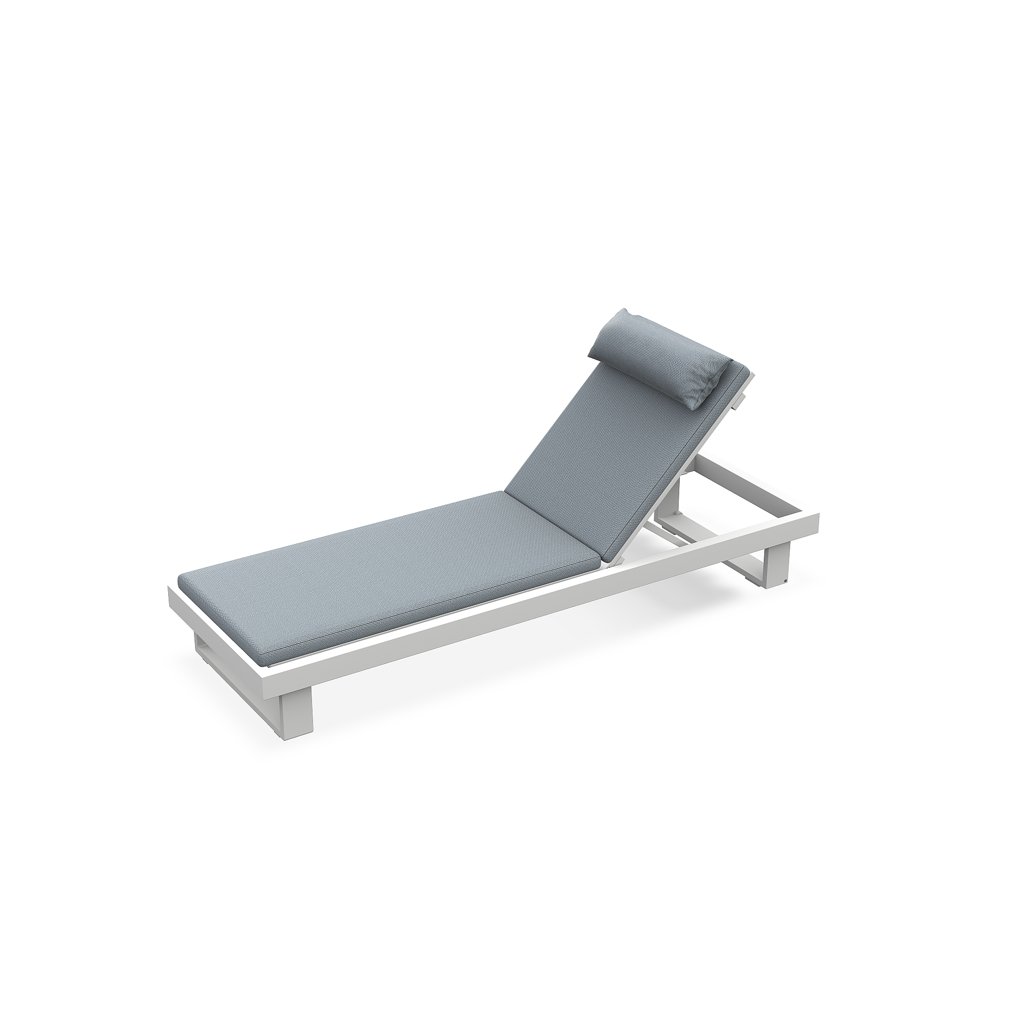 Siedzenia są niskie, a poduszki miękkie, dzięki czemu można zatopić się w fotelu i uzyskać najwyższy poziom relaksu. Rama aluminiowa jest dostępna w kolorze antracytowym lub białym matowym.