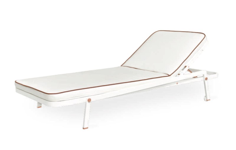 Zaprojektowany z dbałością o szczegóły leżak ogrodowy RIBBON łączy w sobie eleganckie miedziane detale i lakierowane aluminiowe linie.