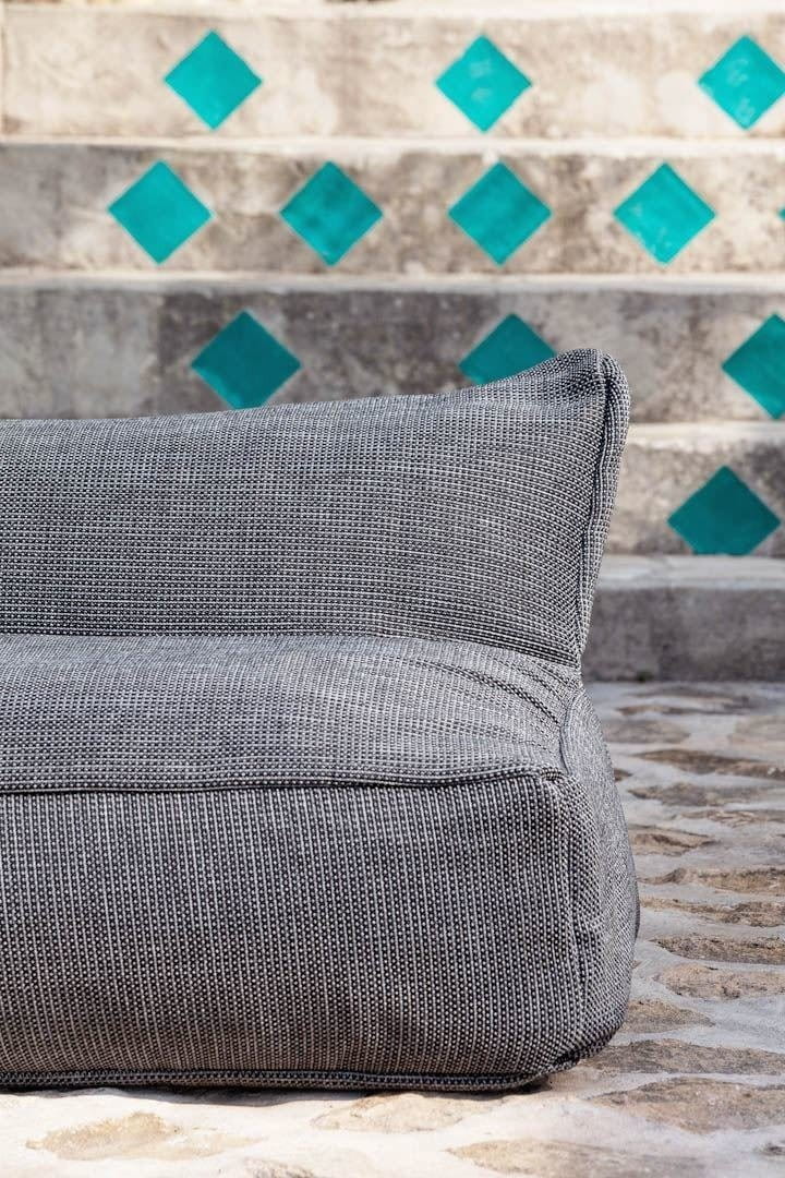 Sofa ogrodowa o wysokości 40 cm sobodnie tworzy miejsce dla 2 osób.