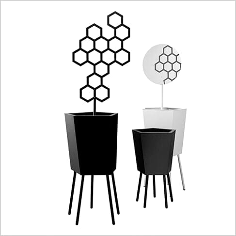 Donicę Elevation opracował w swoim paryskim studio Arik Levy. Jaka jest idea tego produktu? Stajesz twarzą w twarz ze światem roślin fascynując się strukturą plastra miodu, która swoim kształtem trejażu pozwala wspinać się i skręcać.