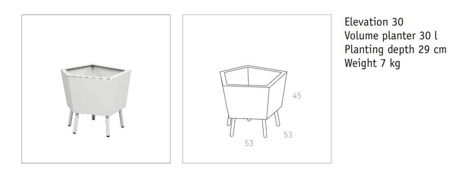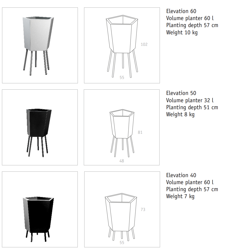 Donica Elevation ma kształt pięciokąta i występuje w kilku rozmiarach.