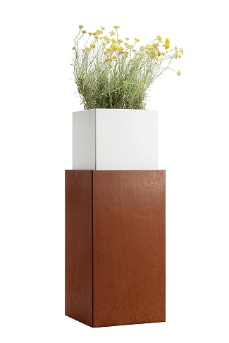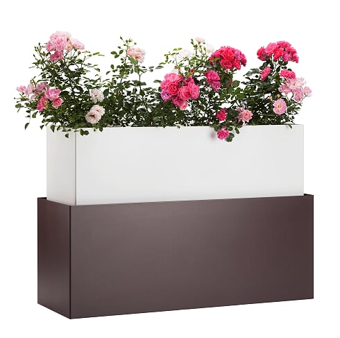 Donice One in One występując w 2 wersjach: zewnętrzna część jest antracytowa lub wykonana ze stali Corten. Część wewnętrzna zawsze biała.
