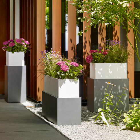 Donice serii One in One to dwie idealnie pasujące do siebie 'kostki', które tworzą ciekawy efekt architektoniczny.