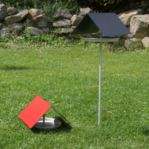 Metalowy, malowany proszkowo - w 3 kolorach daszka: antracytowym, czerwonym i ciemnym zielonym.