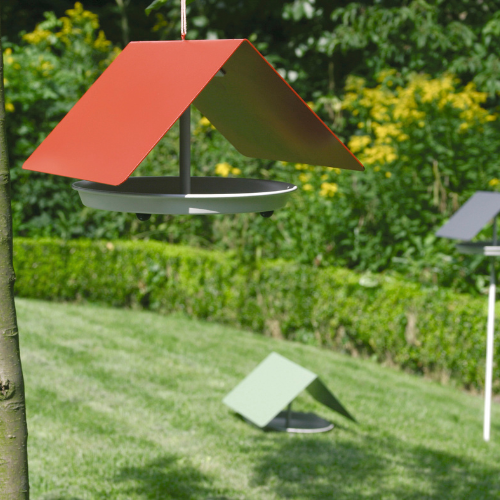 Karmnik Birdy można zawiesić lub postawić wolnostojąco. Taca jest zawsze w kolorze białym.