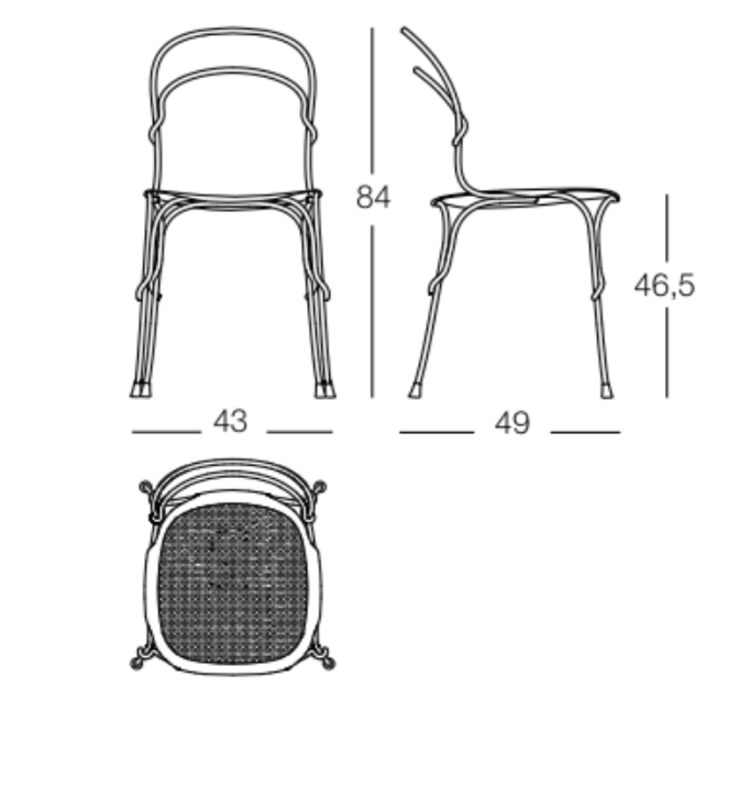 Zdobienia na ramie i oparciu dodają elegancji i szyku całości, dodatkowo plecionka na siedzisku