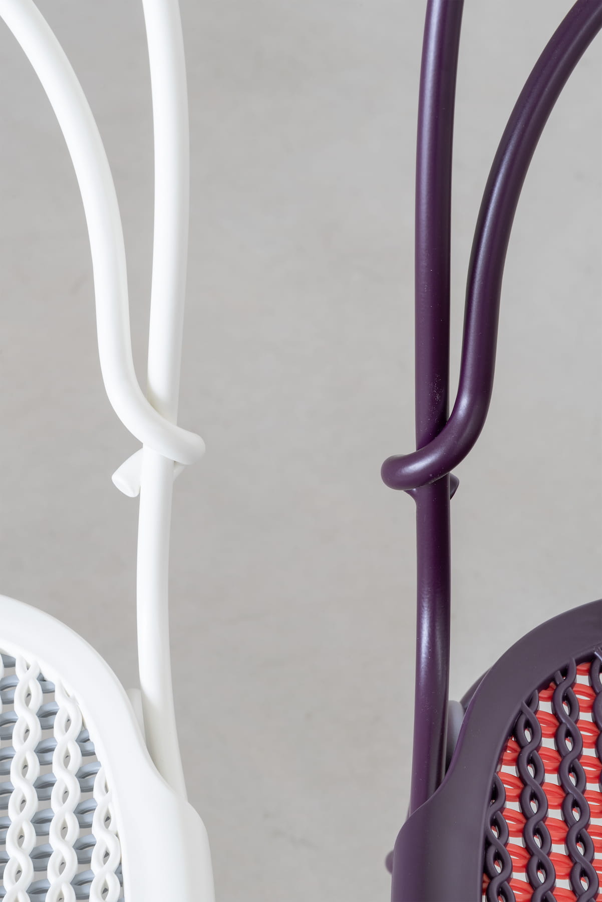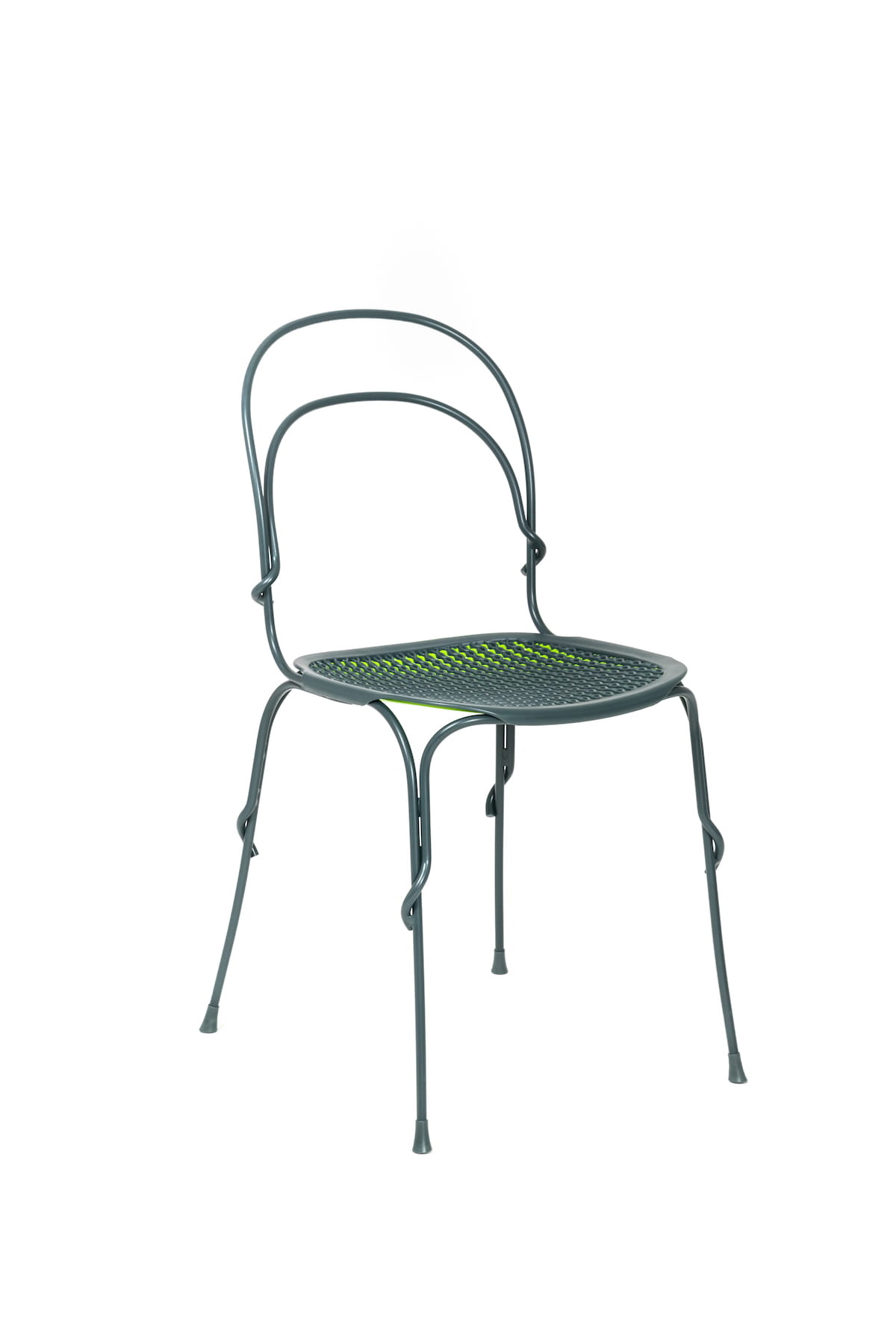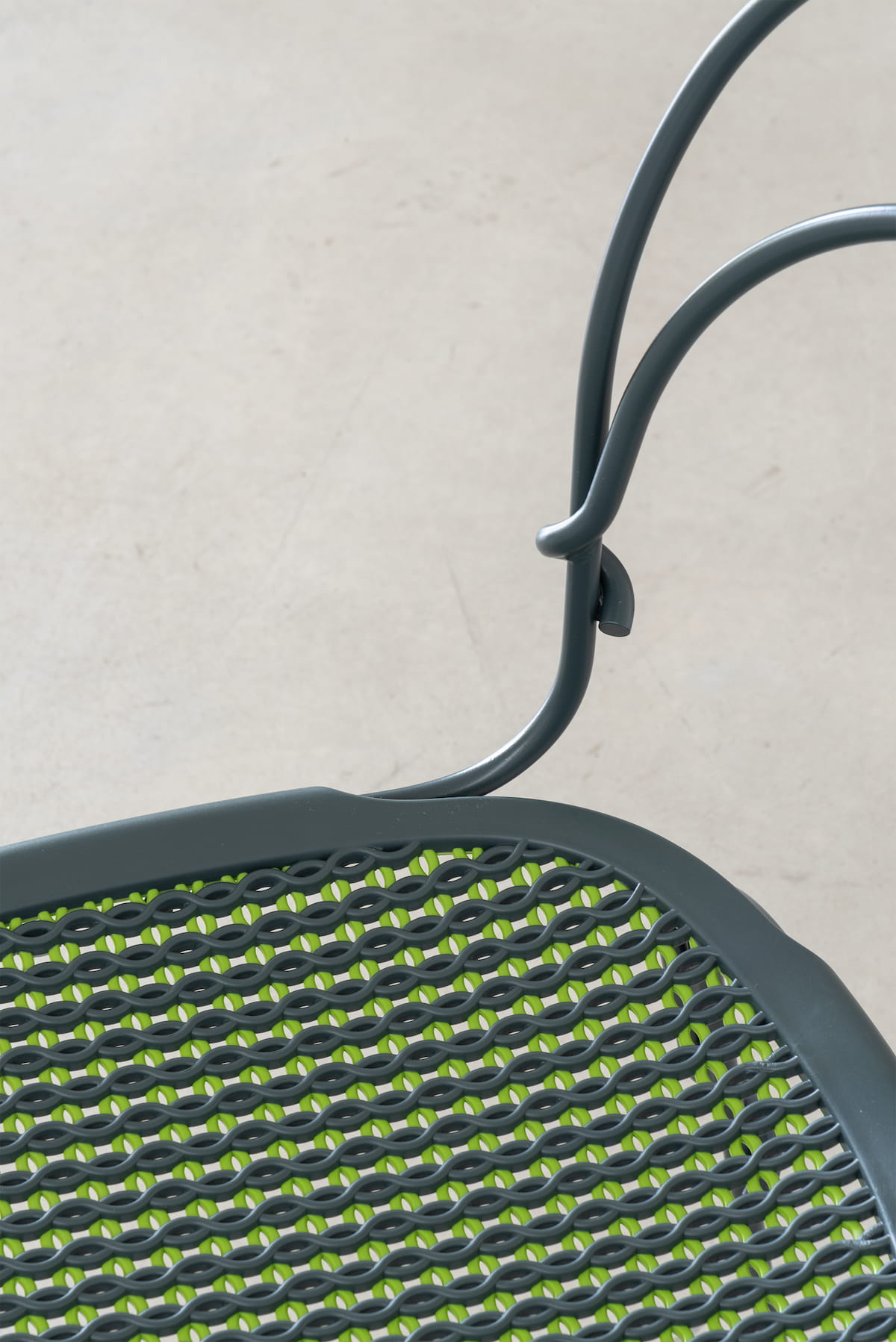 Stalowa rama z siedziskiem z polipropylenu stanowi świetne połączenie jeśli chodzi o meble ogrodowe, wytrzymałe i odporne