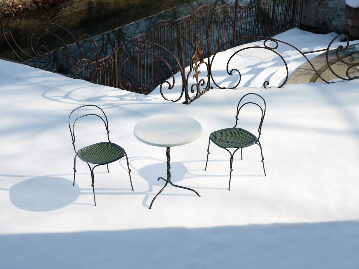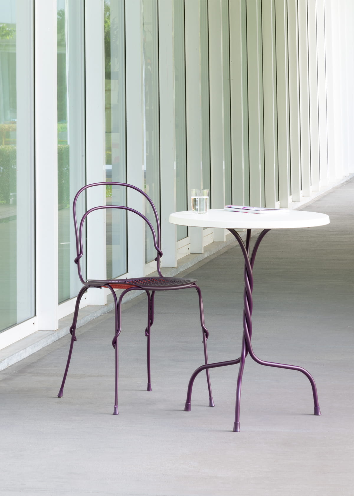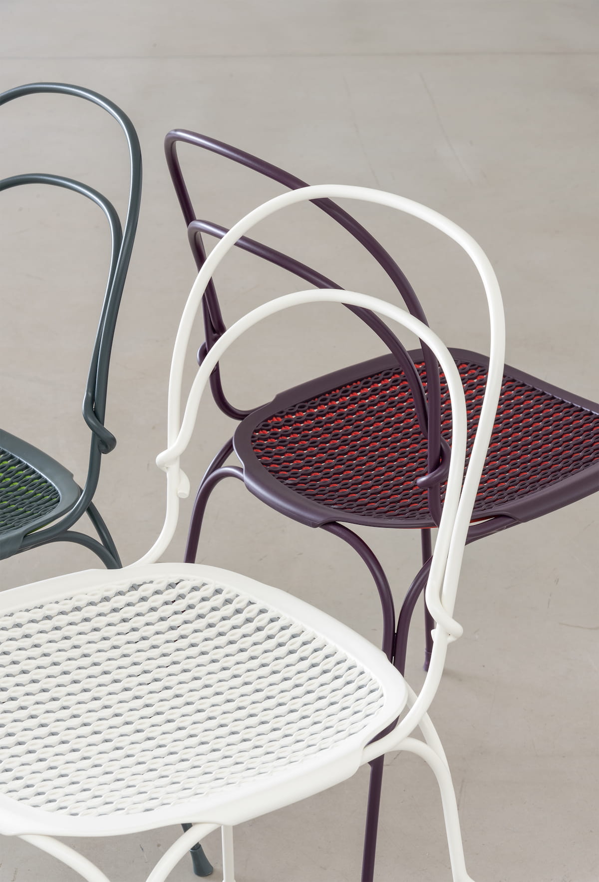 Stalowa rama z siedziskiem z polipropylenu stanowi świetne połączenie jeśli chodzi o meble ogrodowe, wytrzymałe i odporne