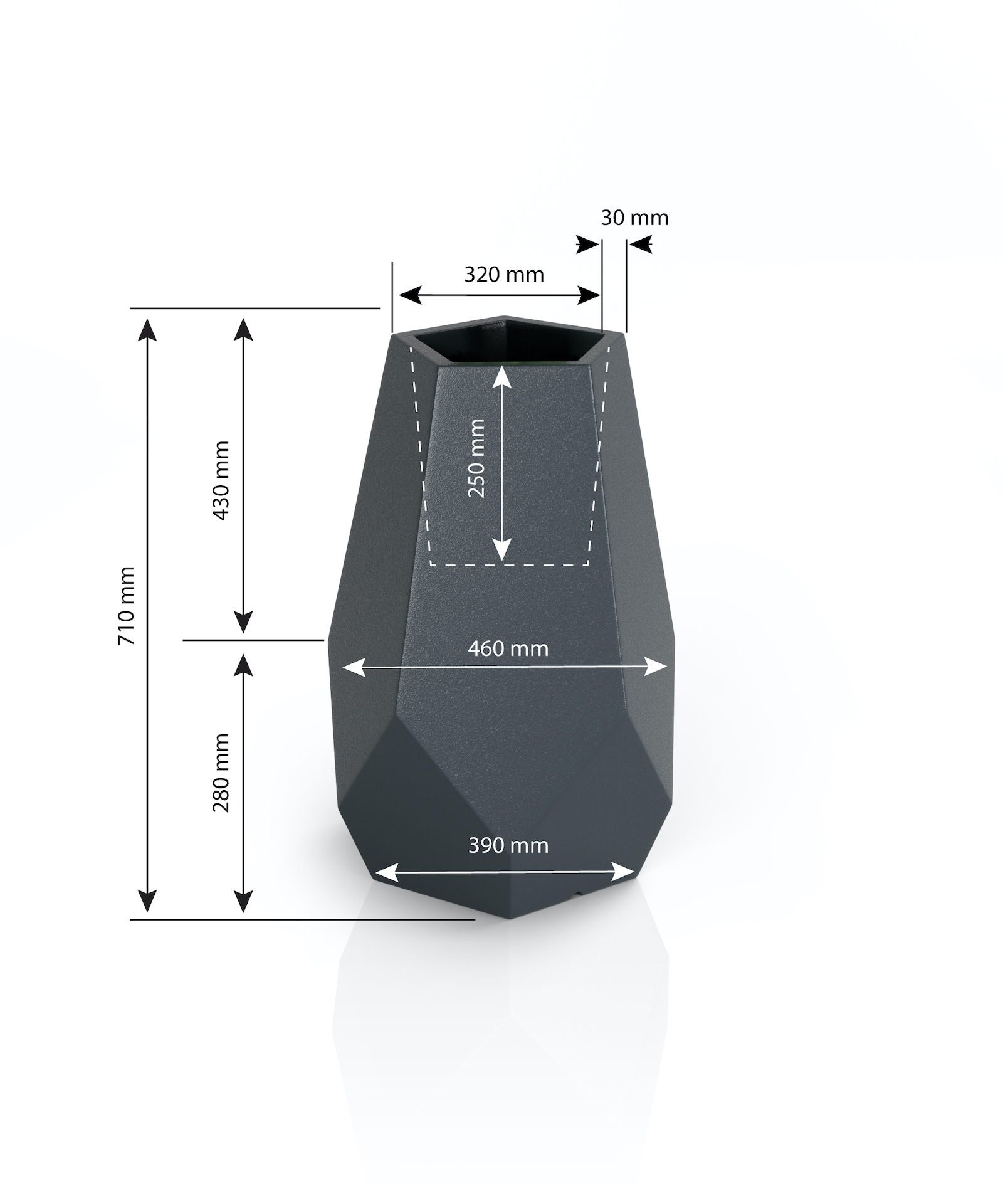 | Donica Bari | 71 cm | 46 x 46 cm | 6 kg | 25 cm | Polietylen PE |
