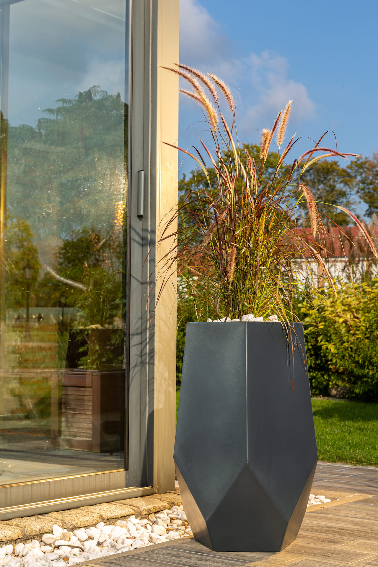 Geometryczny kształt donicy Bari pozwala na aranżowanie nowoczesnych wnętrz, balkonów, tarasów i ogrodów.