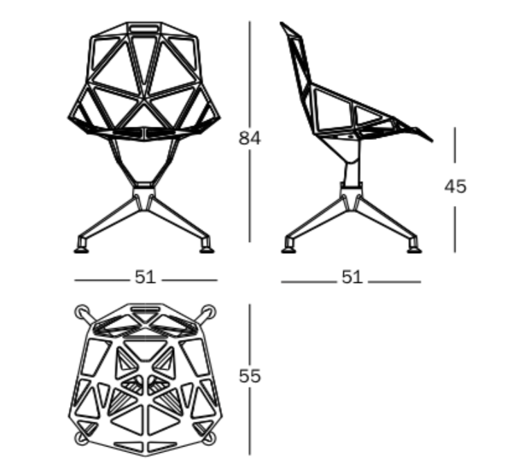 Krzesła CHAIR_ONE występują w różnych wersjach, od standardowych 4 nóg, przez obrotowe po krzesło na betonowej bazie