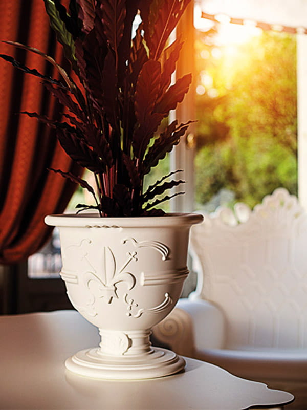 Dzięki detalom i kształtowi, który przypomina antyczną barokową doniczkę z XVIII wieku.