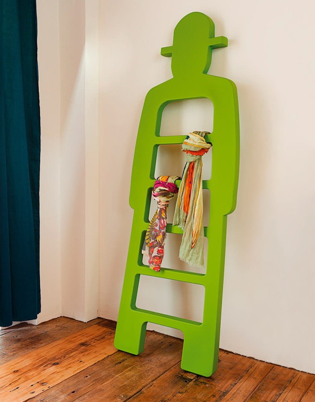 Eklektyczna fatnazja projektanta zamieniła drabinę w niezbędny ale nieporęczny przednio codziennego użytku w rzeźbę.