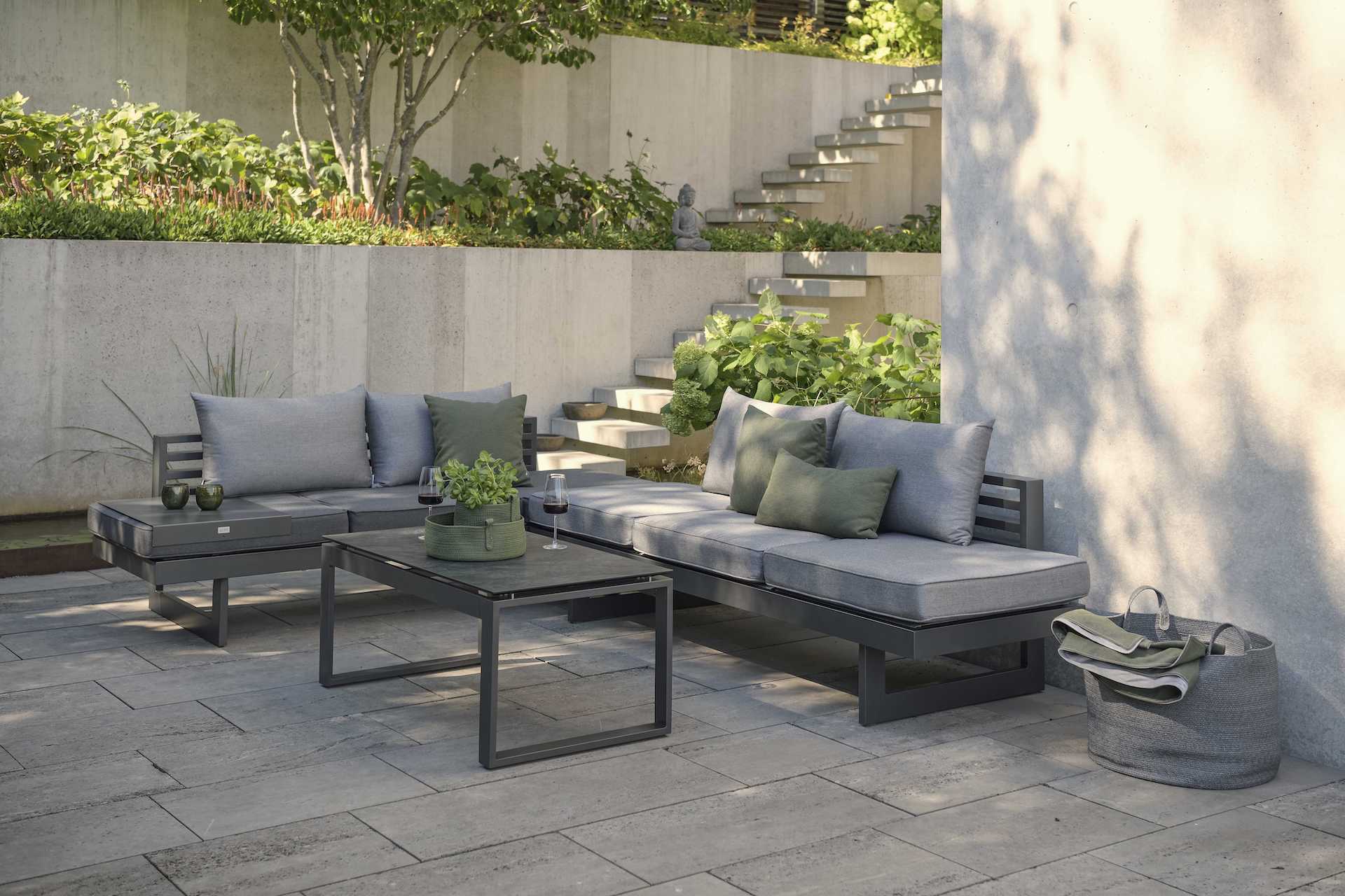 to nowoczesne seria mebli ogrodowych, bazująca na prostych kątach.