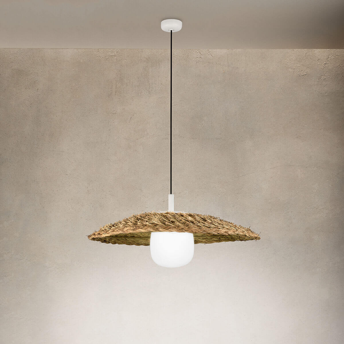 Lampa wisząca ILLA prezentowana jest jako opcja oświetlenia odmienna od pozostałych, w której trawa esparto łączy się z metalem, mieszając rustykalność z nowoczesnością.