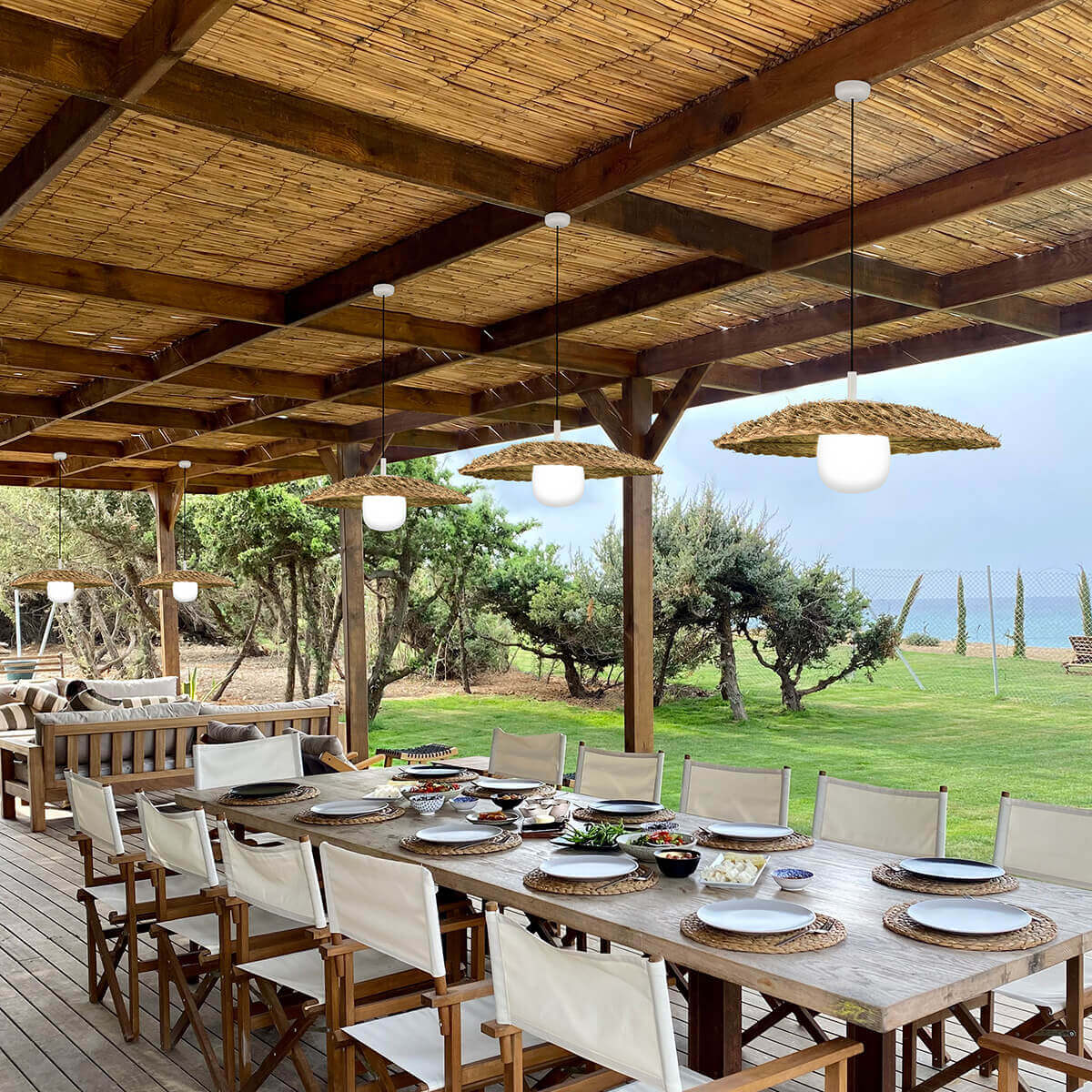 Lampa ogrodowa ILLA w formie wiszącej lampy to model, który zrywa z rodziną lamp stworzonych ze sznurków.