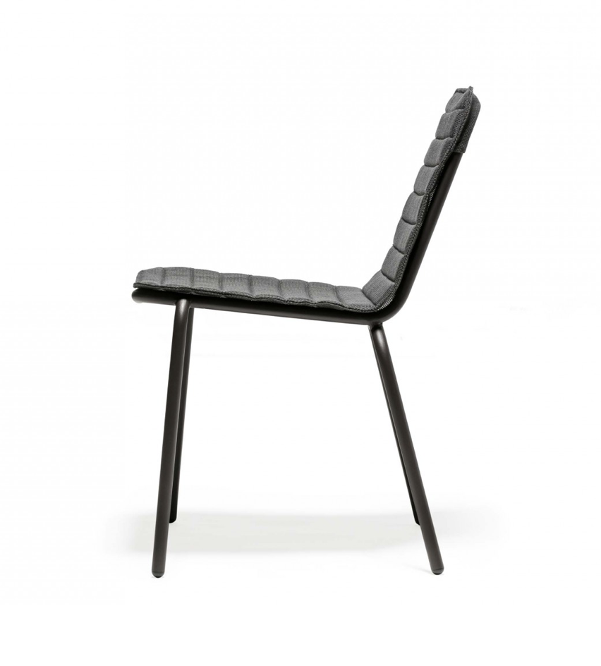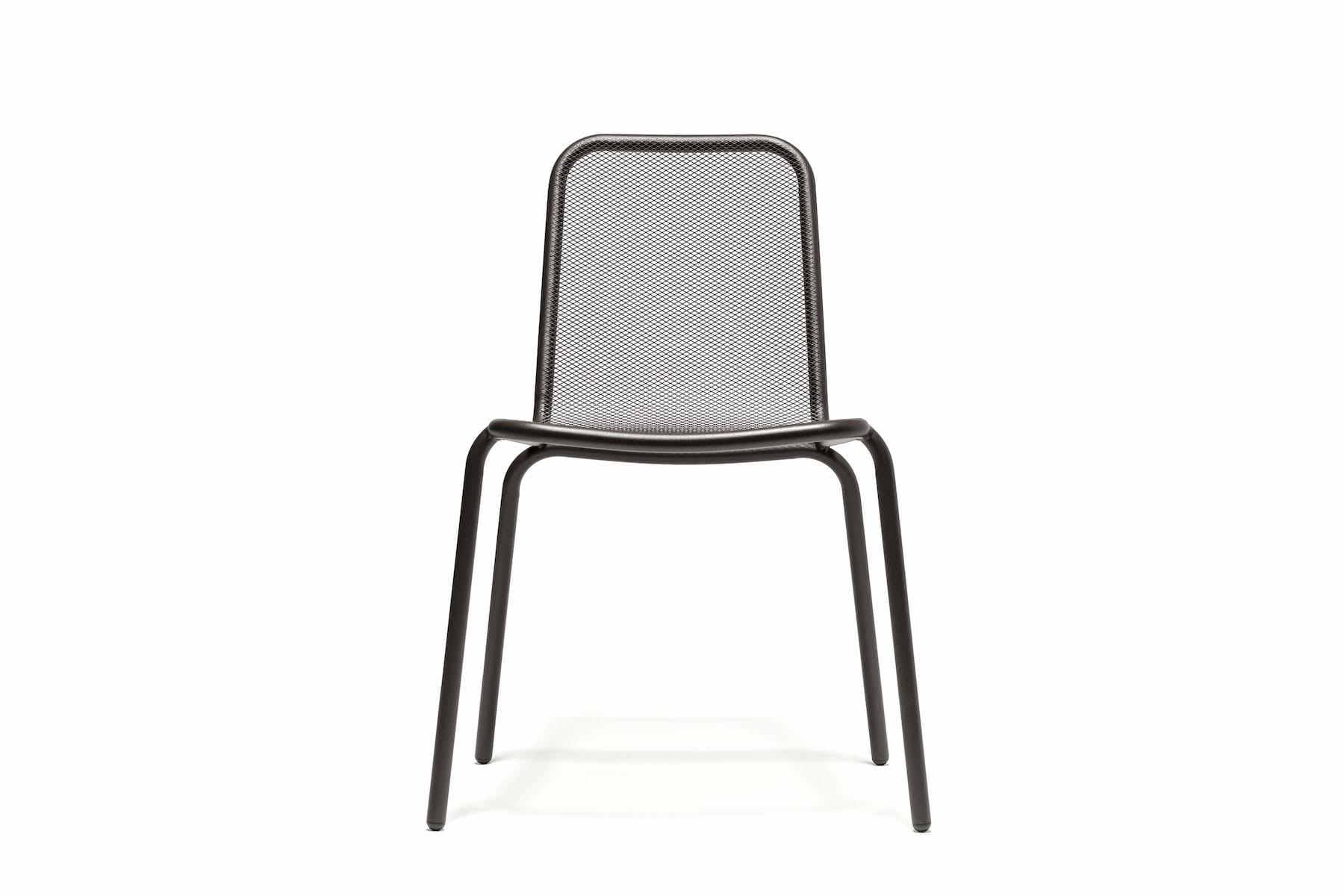 to krzesło ogrodowe w całości wykonane z metalu, oparcie ze stalowej siatki mesh nadaje loftowy wygląd, który w całym wydźwięku jest lekkie i nie przytłacza przestrzeni.