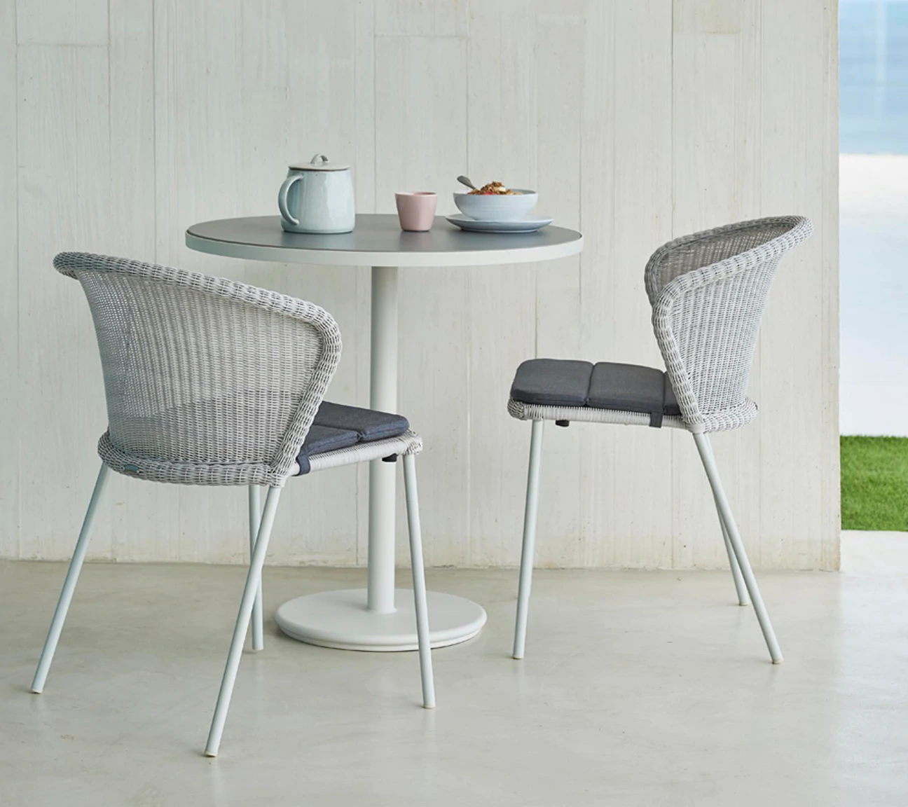 Ogrodowe krzesło lean dotępne jest z poduszką na siedzisko, cena zawiera krzesło wraz z poduszką z Cane-line Natte®