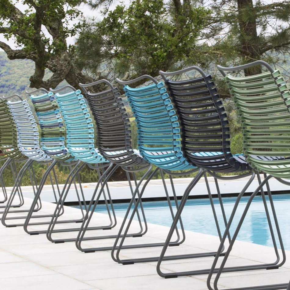 Ogrodowe Krzesło CLICK występuje w wielu różnych kolorach - w tej wersji posiada niskie oparcie i nie ma podłokietników.