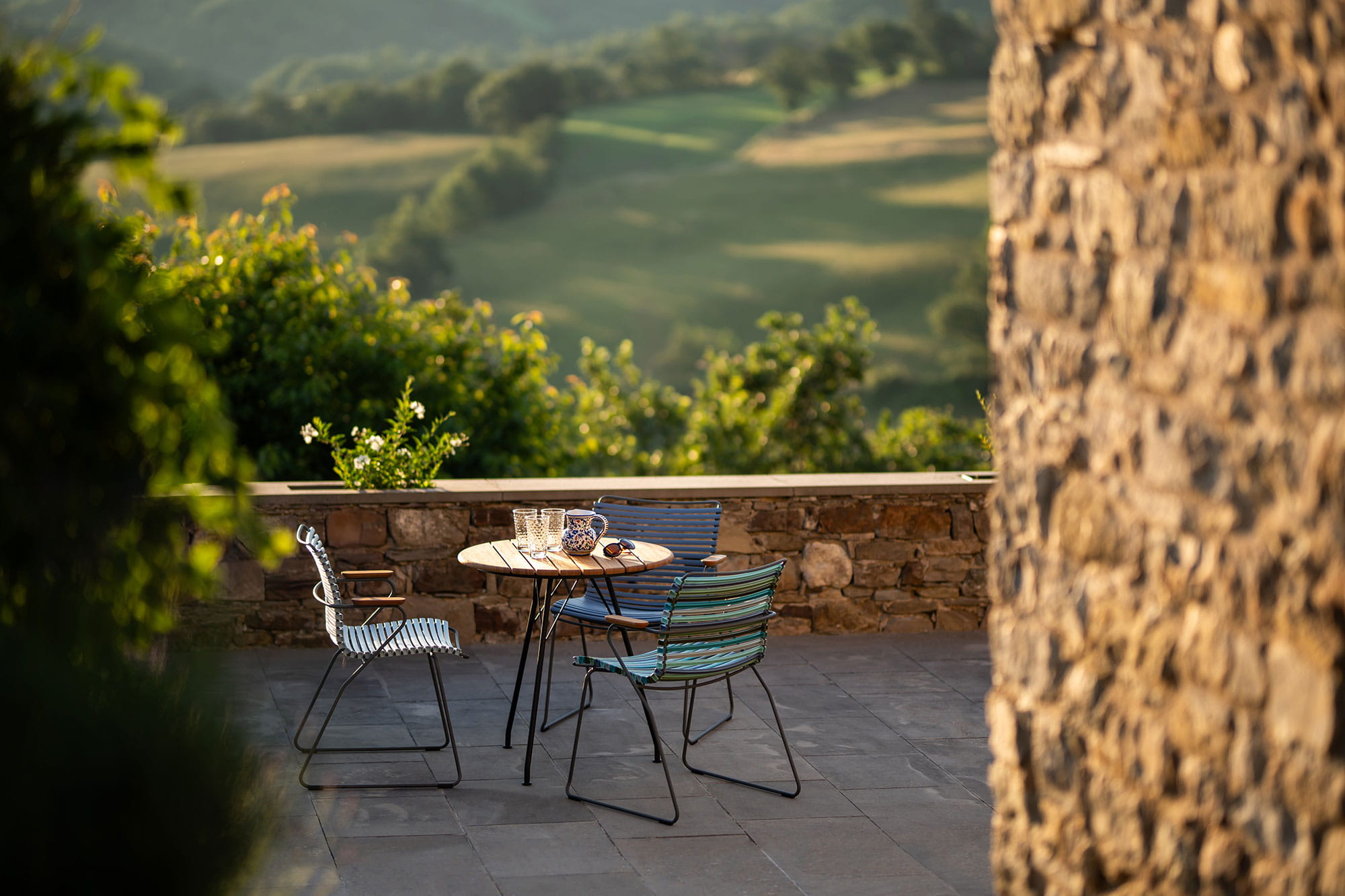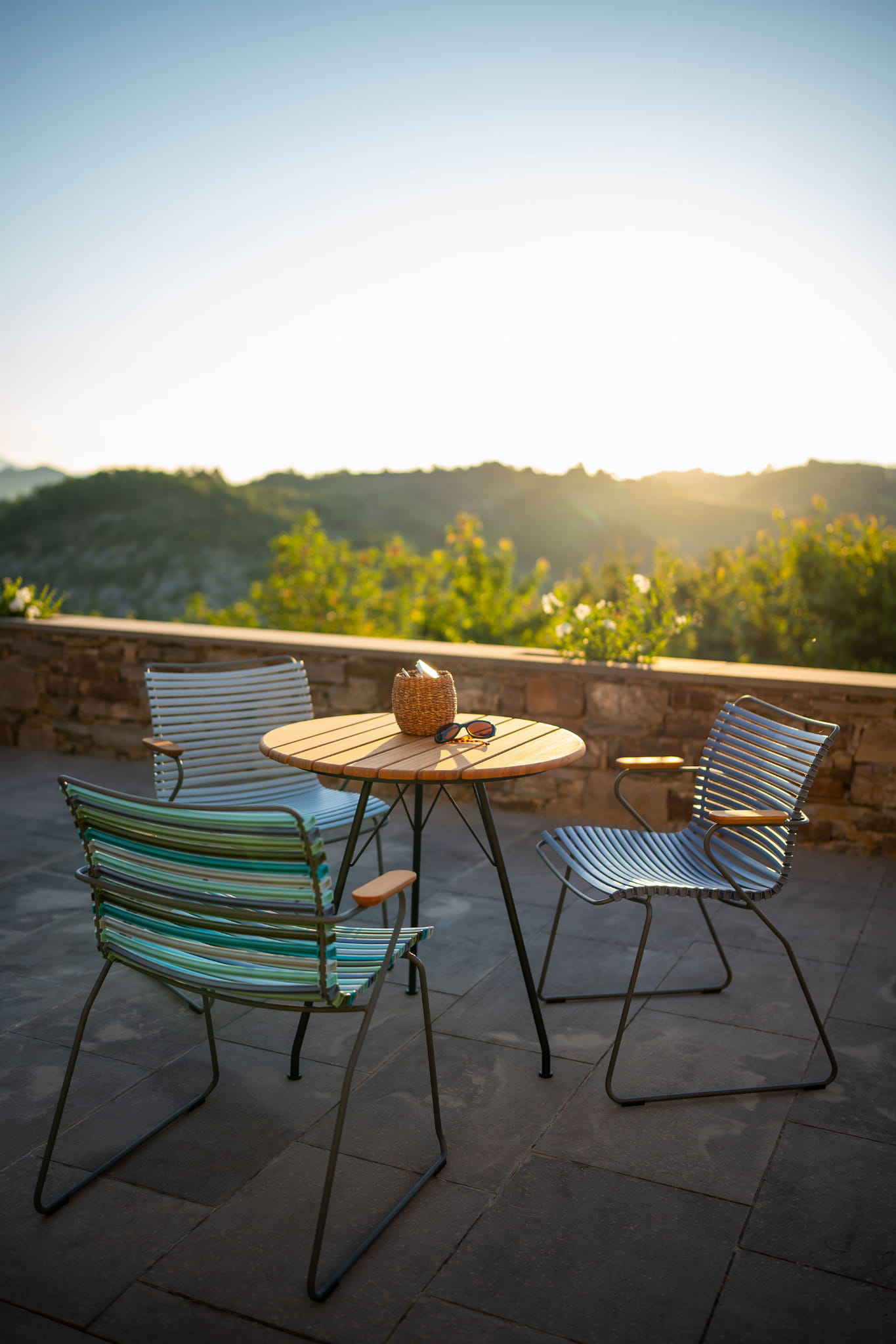 Krzesło CLICK idealnie komponuje się ze stołami ogrodowymi z bambusowym blatem.
