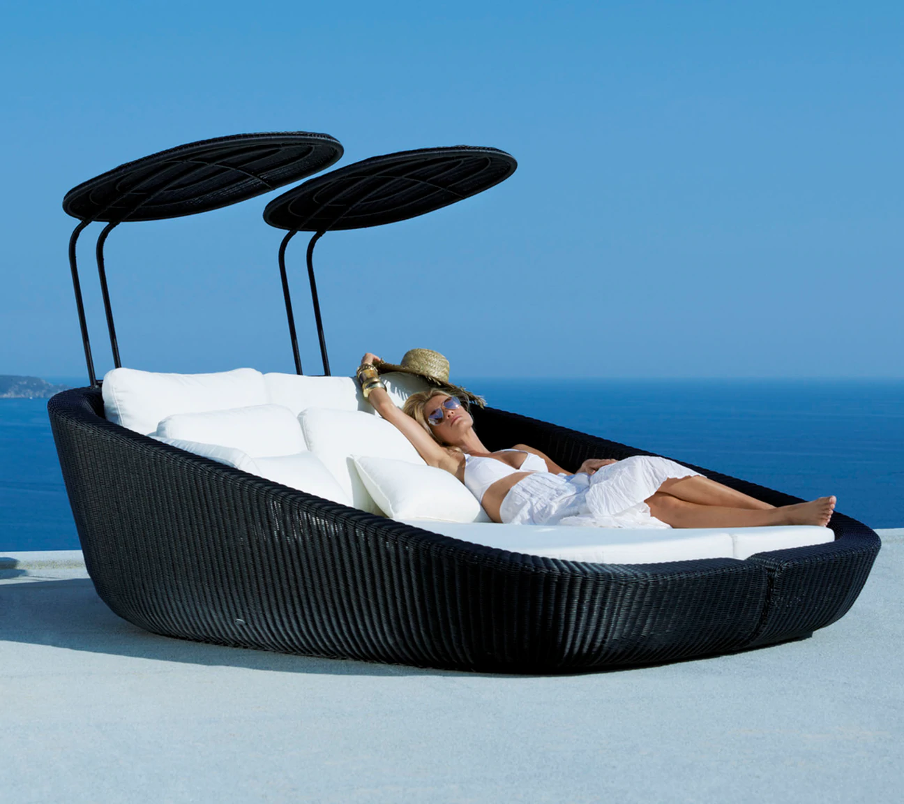 Ogrodowe łóżko dzienne wyprodukowane z Cane-line Weave®, które są niezwykle pogodo odpornym materiałem,