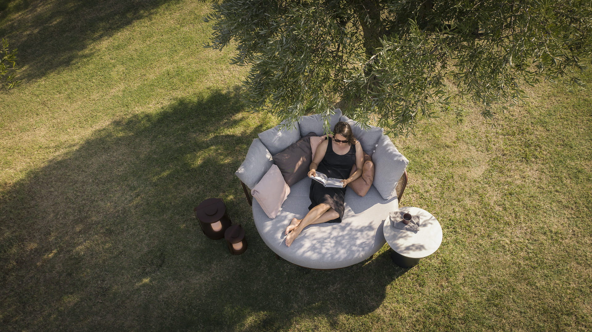 To duże, wygodne ogrodowe łóżko dzienne serii BAZA pomieści 3-4 osoby - jego średnica to aż 170 cm!