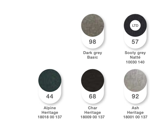 - sunbrella Heritage w kolorze beżowym, ciemnym zielonym i antracytowym (50% akryl z recyklingu, 47% akryl, 3% polyester)
