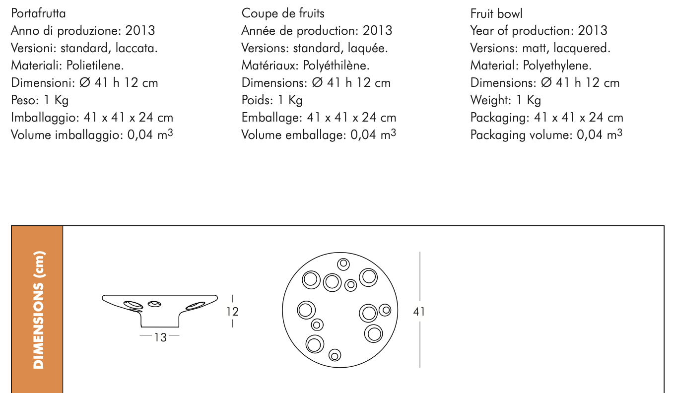 To kolorowa i nowoczesna dekoracja, idealna do użytku jako naczynie na owoce. By zadziwić swoich gości, Dots jest dostępny w wielu kolorach.