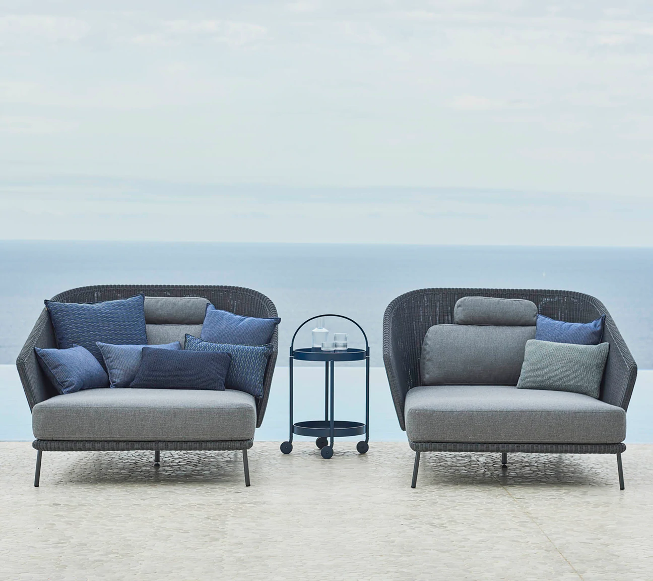 sofa i krzesła serii mega stworzone są z cane-line Weave® które są idealne do użytku na zewnątrz w każdym klimacie, są uv i termiczno odporne.