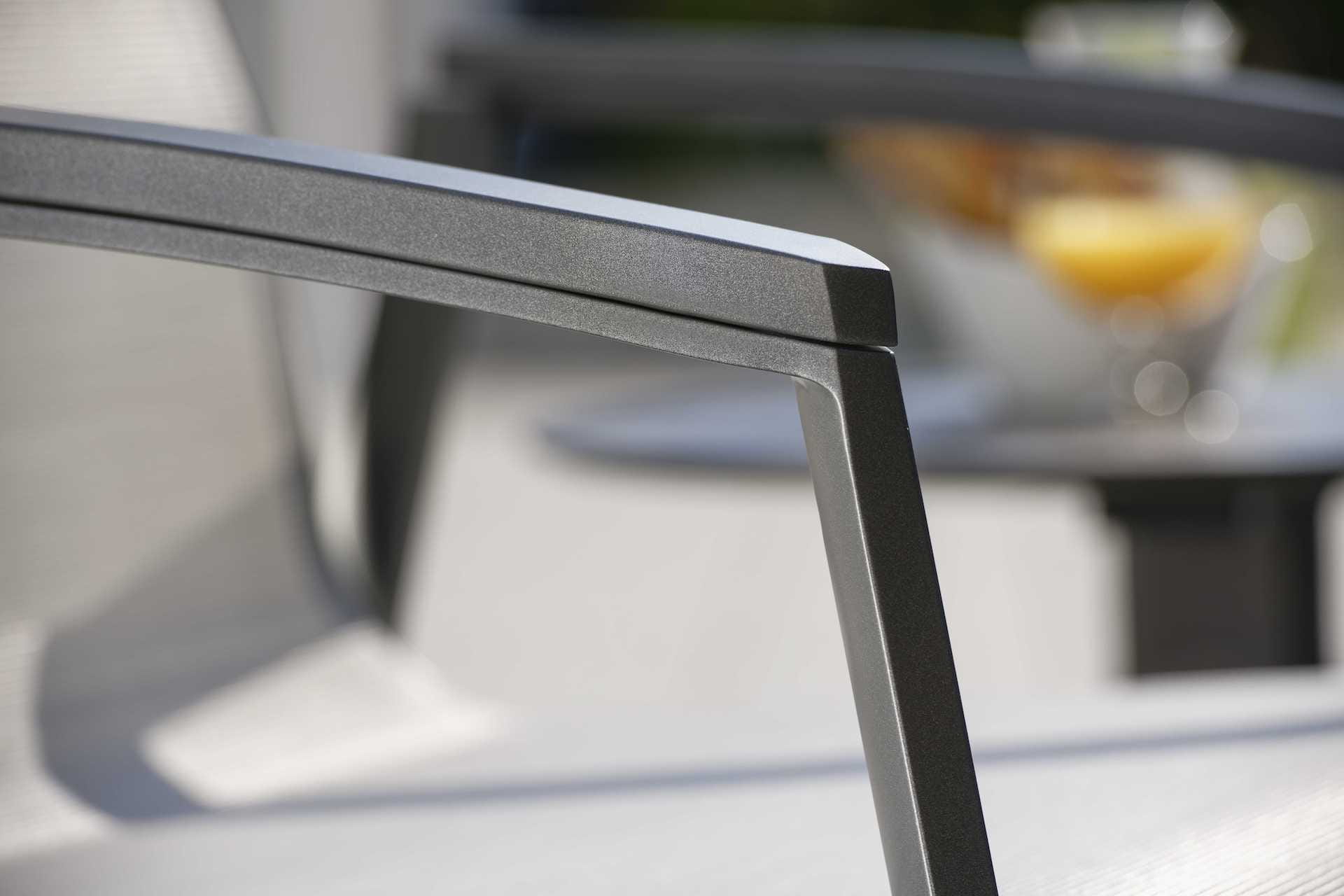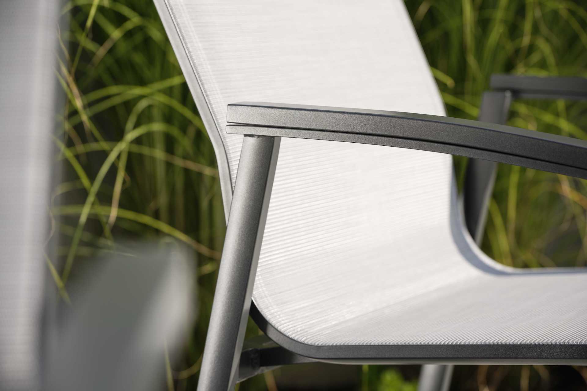 Ponadto dzięki zastosowanym materiałom jest łatwy w utrzymaniu czystości i lekki i przeznaczony w 100% do użytku na zewnątrz.