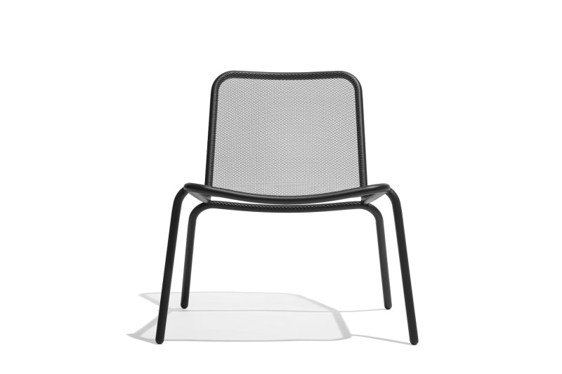 to fotel ogrodowy w całości wykonane z metalu, posiada oparcie ze stalowej siatki mesh nadającej mu loftowy wygląd meblu.