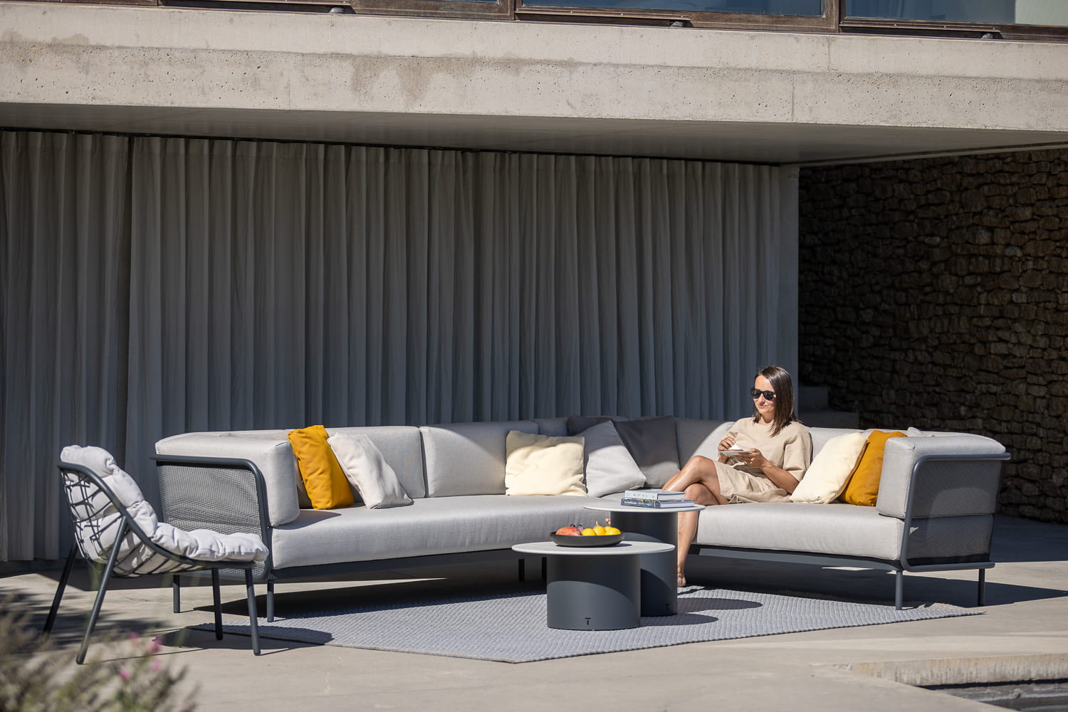 Tapicerka i poduchy do wyboru w różnych kolorach. Wykonana z materiałów najwyższej jakości, które nie tracą koloru i są niezwykle przyjemne i miękkie w dotyku, niczym tapicerki mebli domowych, a przy tym odporne na działanie czynników atmosferycznych, szybkoschnące i plamoodporne.