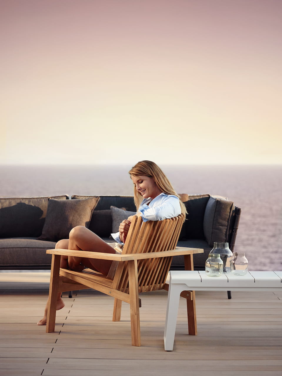 Dzięki miękkim liniom i ciepłemu blaskowi drewna meble ogrodowe teakowe można łączyć i dopasowywać do reszty kolekcji Cane-line.