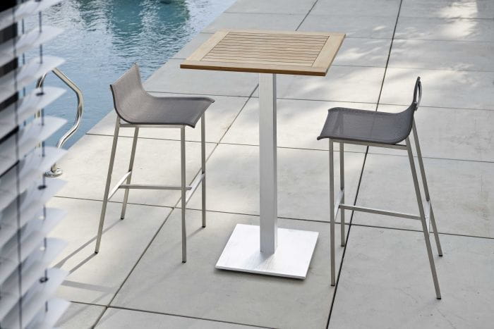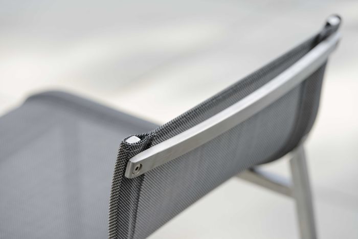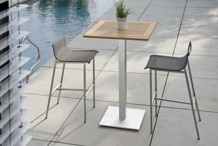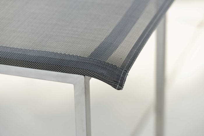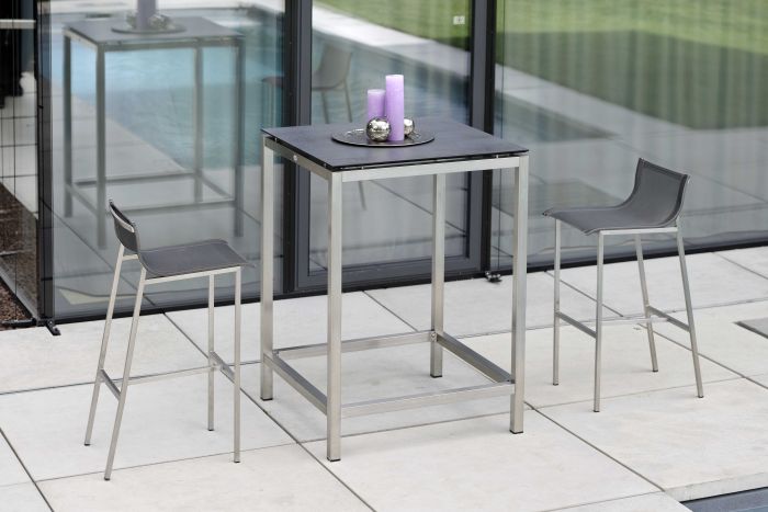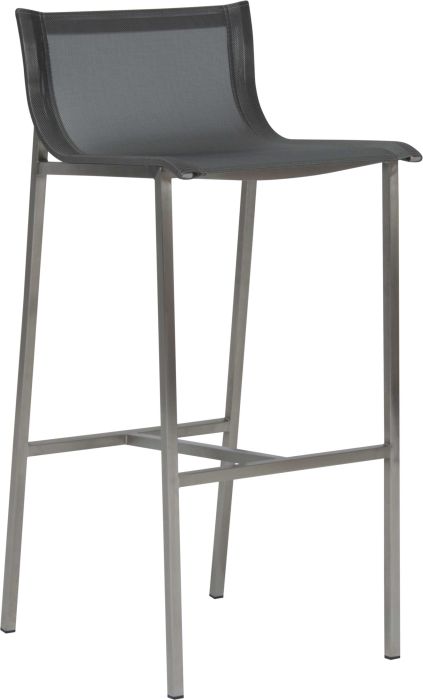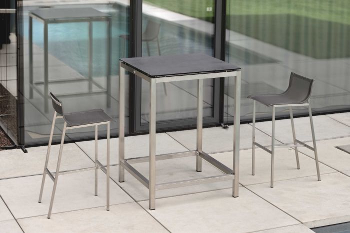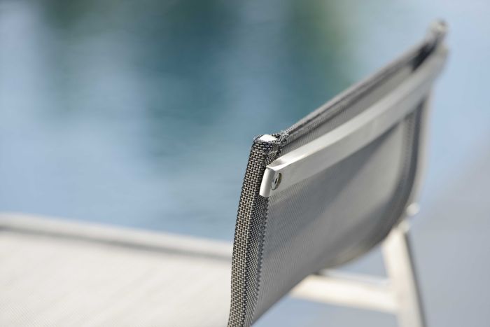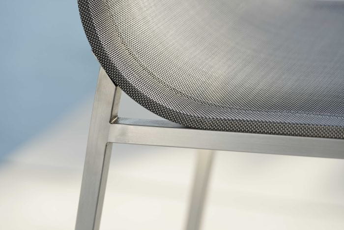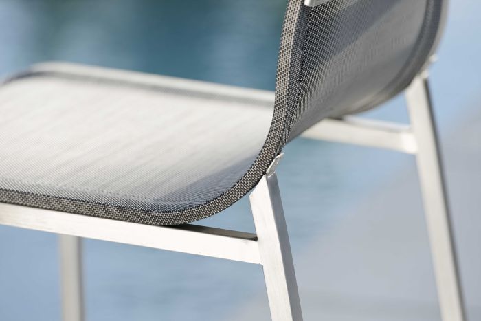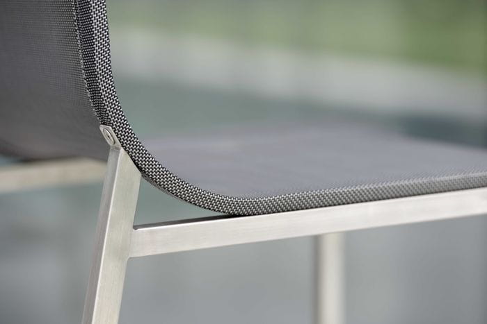 To seria oferująca barowe krzesło ogrodowe, stworzone ze stali nierdzewnej i materiału textilen