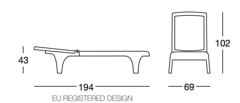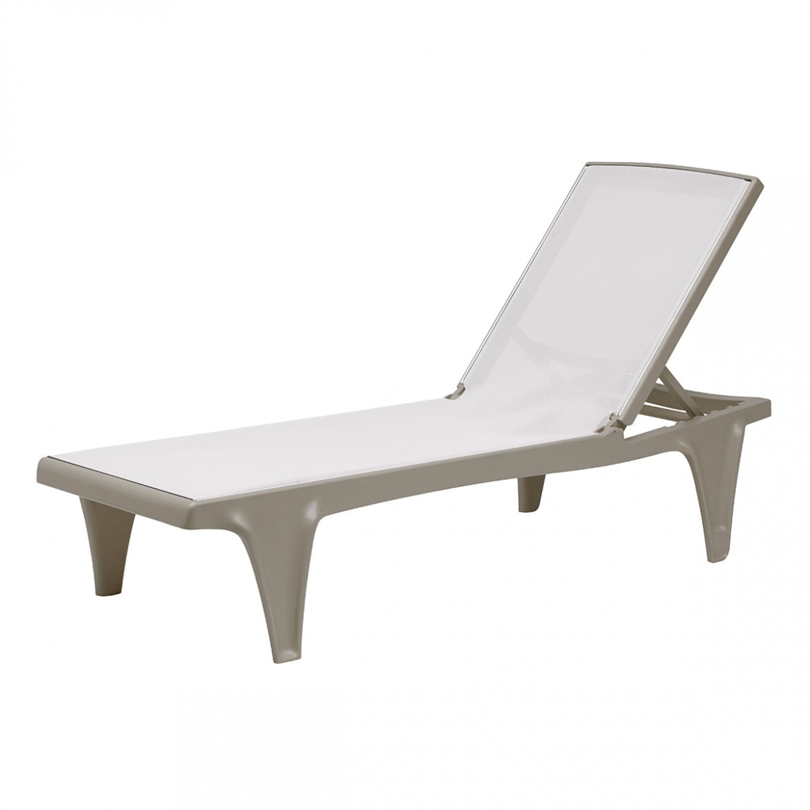 Leżak TAHITI posiada rame stworzoną z termoplastiku, regulowane oparcie, gwarantowana wytrzymałość podczas użytku zewnętrznego.