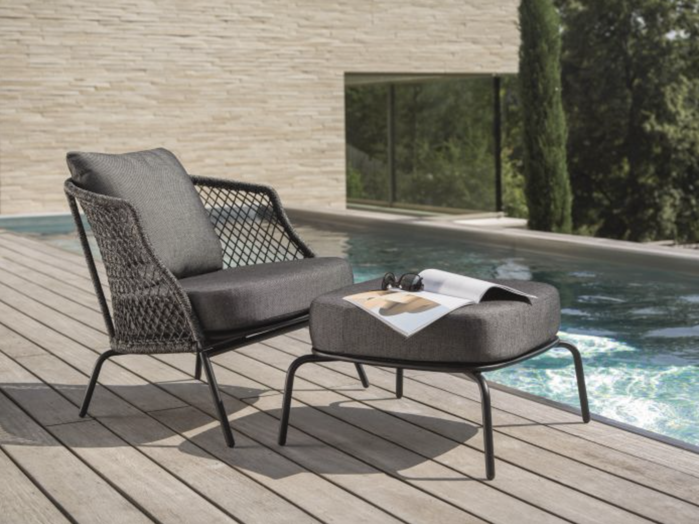 Ogrodowy podnóżek ODEA posiada wygodne i komfortowe poduchy, zapewniając najwyższy komfort użytkowania.