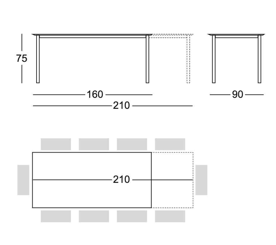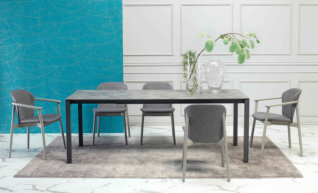 Pranzo to rozsuwany stół, który z wymiaru 160 cm zamienia się do 210 cm mogąc przyjąć w ten sposób większą ilość gości.