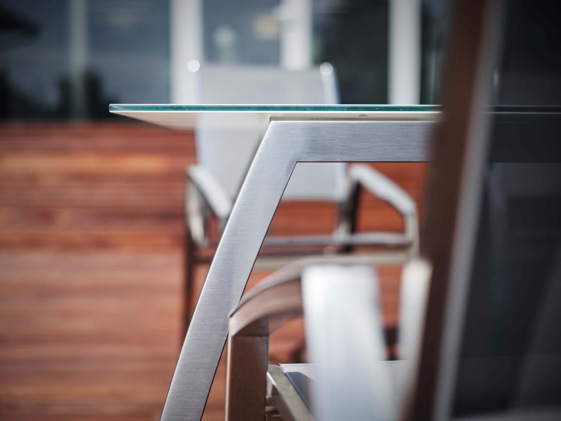 stół ogrodowy ALCEDO wykonany jest z ramy z stali nierdzewnej szczotkowanej, co nadaje elegancji.