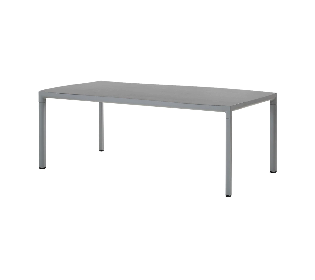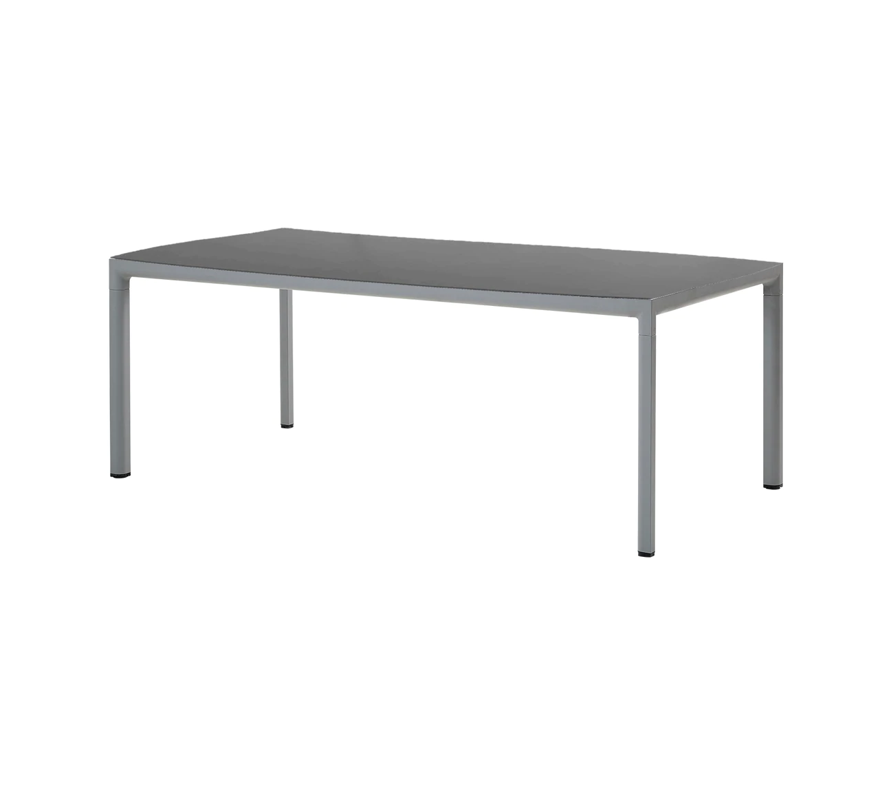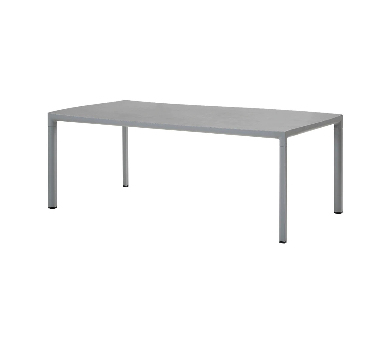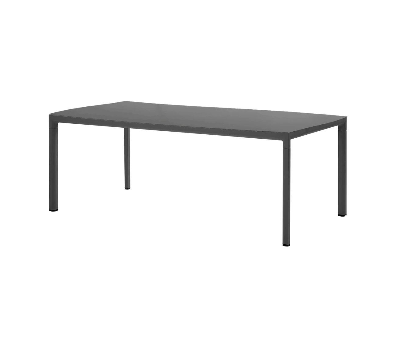 Ogrodowy stół obiadowy DROP łączy blat z krawędziami z głądkim kształtem aluminiowej ramy.