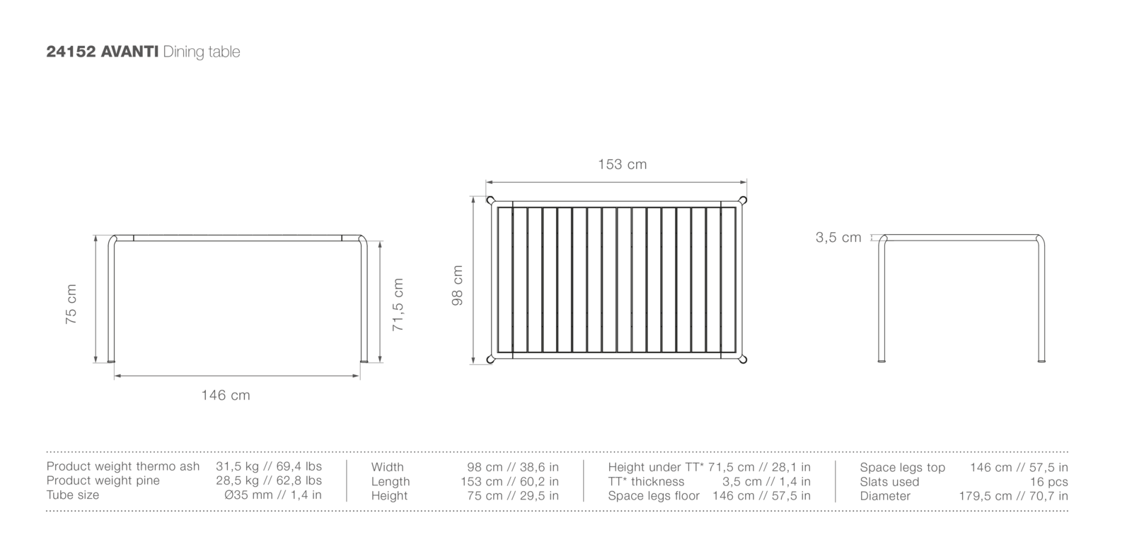 Charakterystyczny, a zarazem minimalistyczny wygląd sprawia, że stół ten będzie stanowić uzupełnienie każdego krzesła lub można go połączyć z ławką AVANTI.