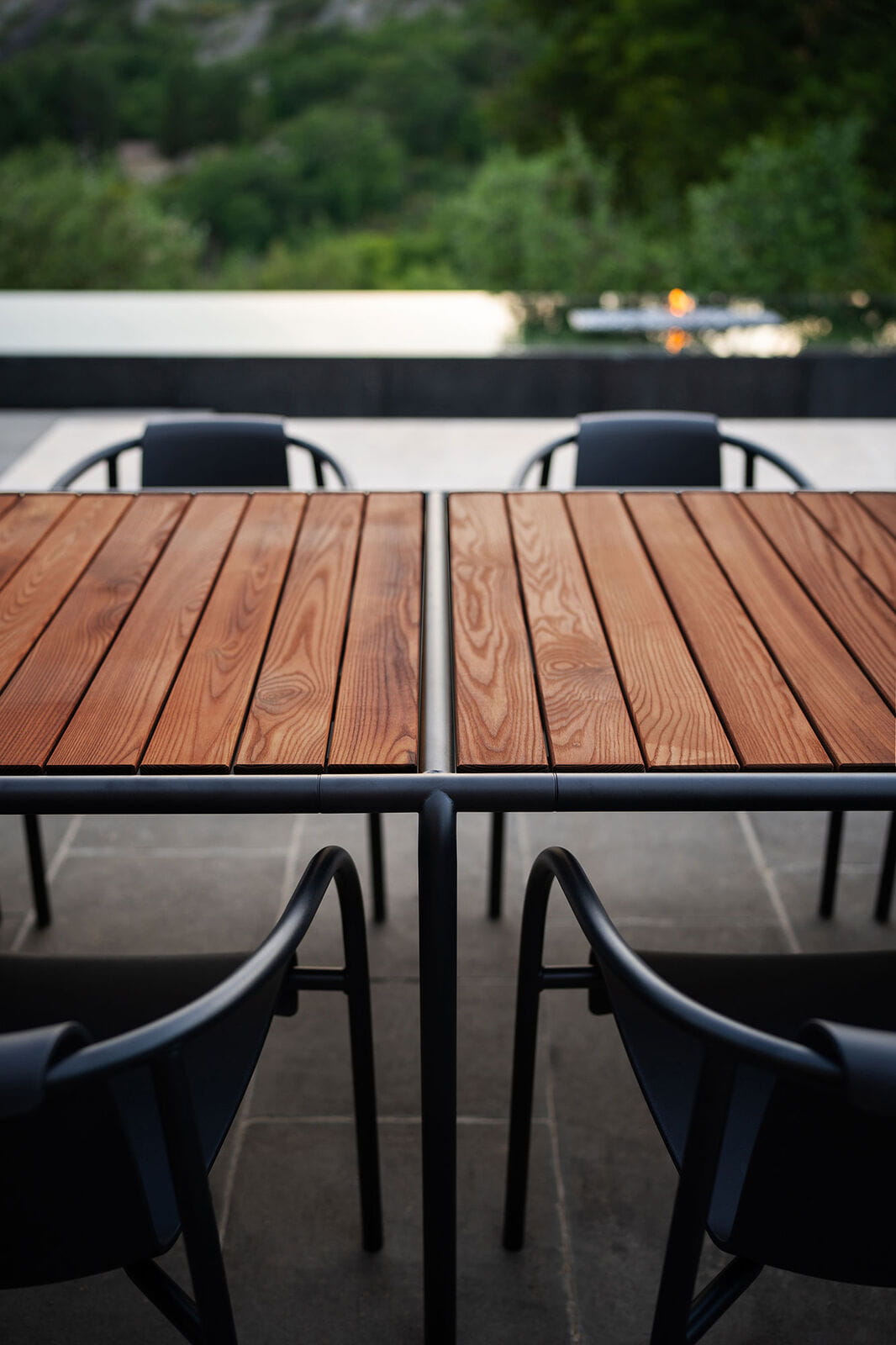 Blaty ławek i stołów AVANTI dostępne są w wersji z termo jesionu lub sosny (FSC® – FSC C153404), co uzupełnia modułową konstrukcję.