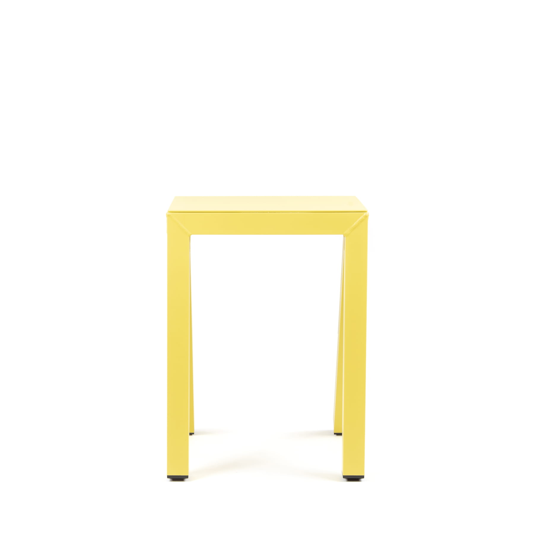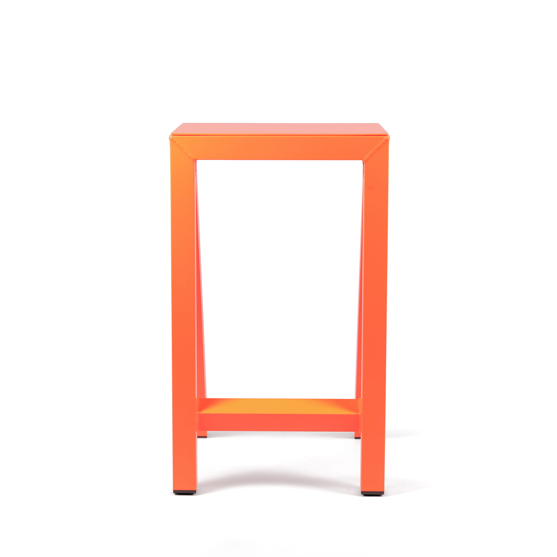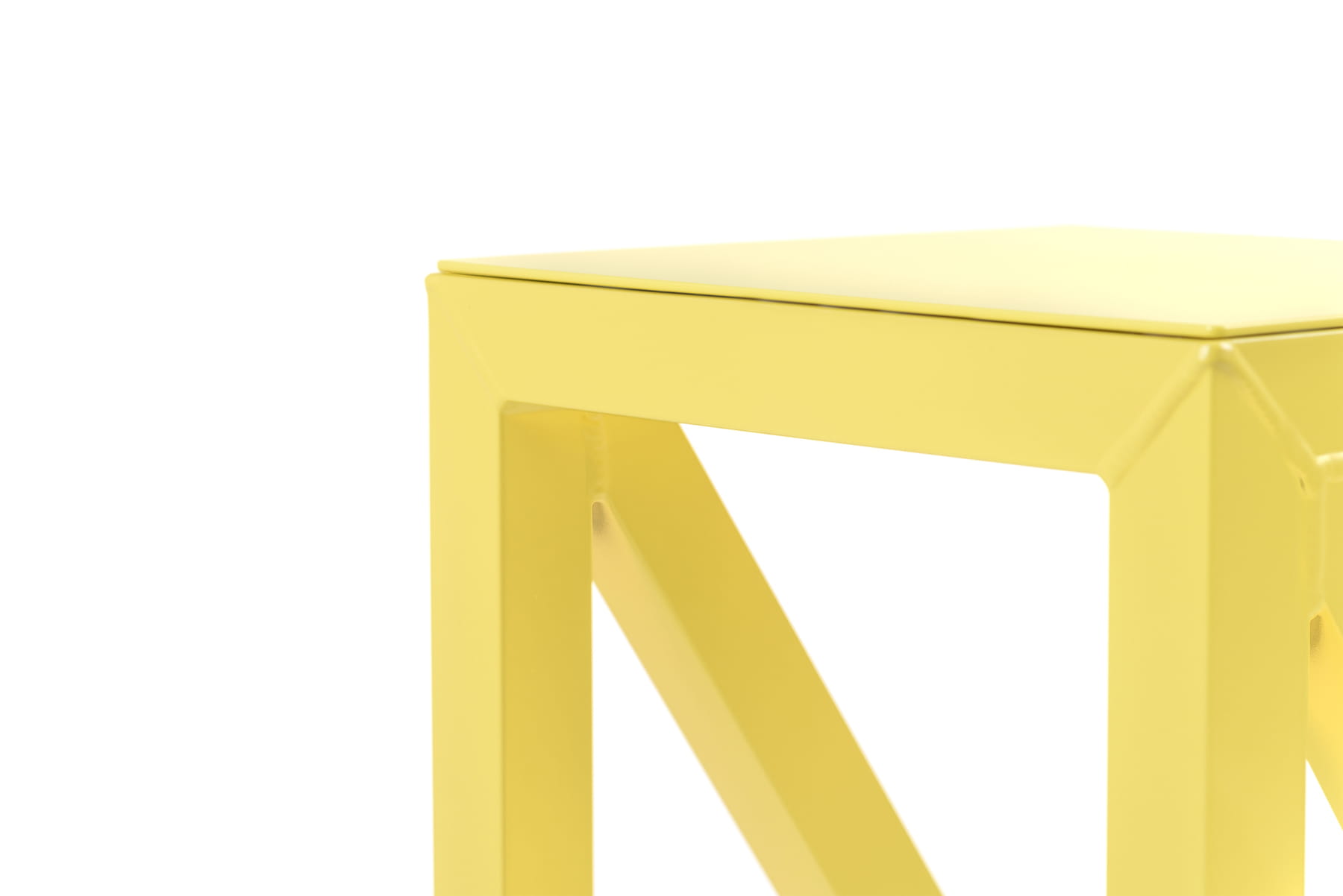 To ogrodowy stołek barowy, o geometrycznym kształcie opartym głównie na kątach prostych,