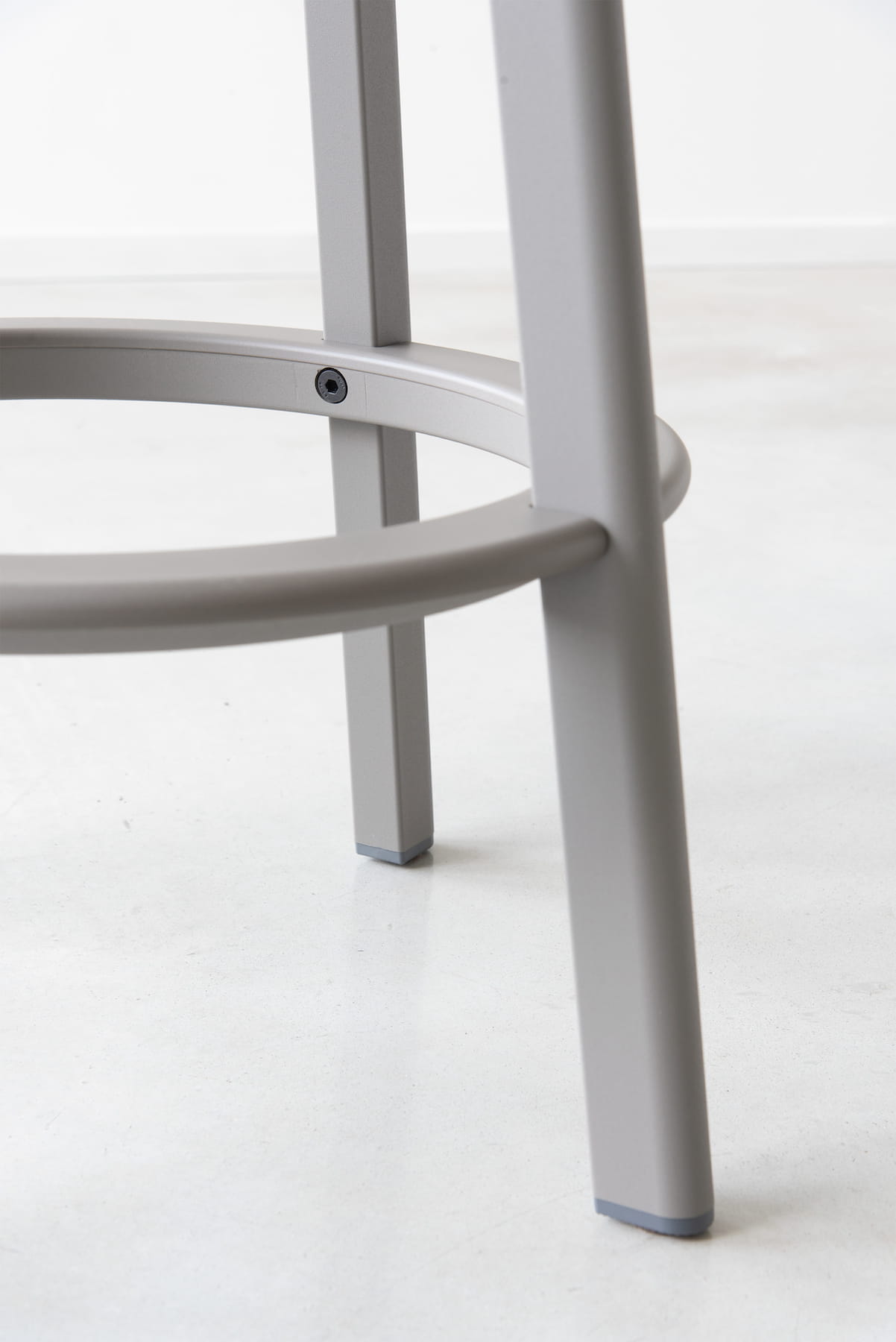 Stołek ogrodowy Déjà-vu posiada podparcie na nogi, dzięki czemu Twoje nogi rownież odpoczywają.