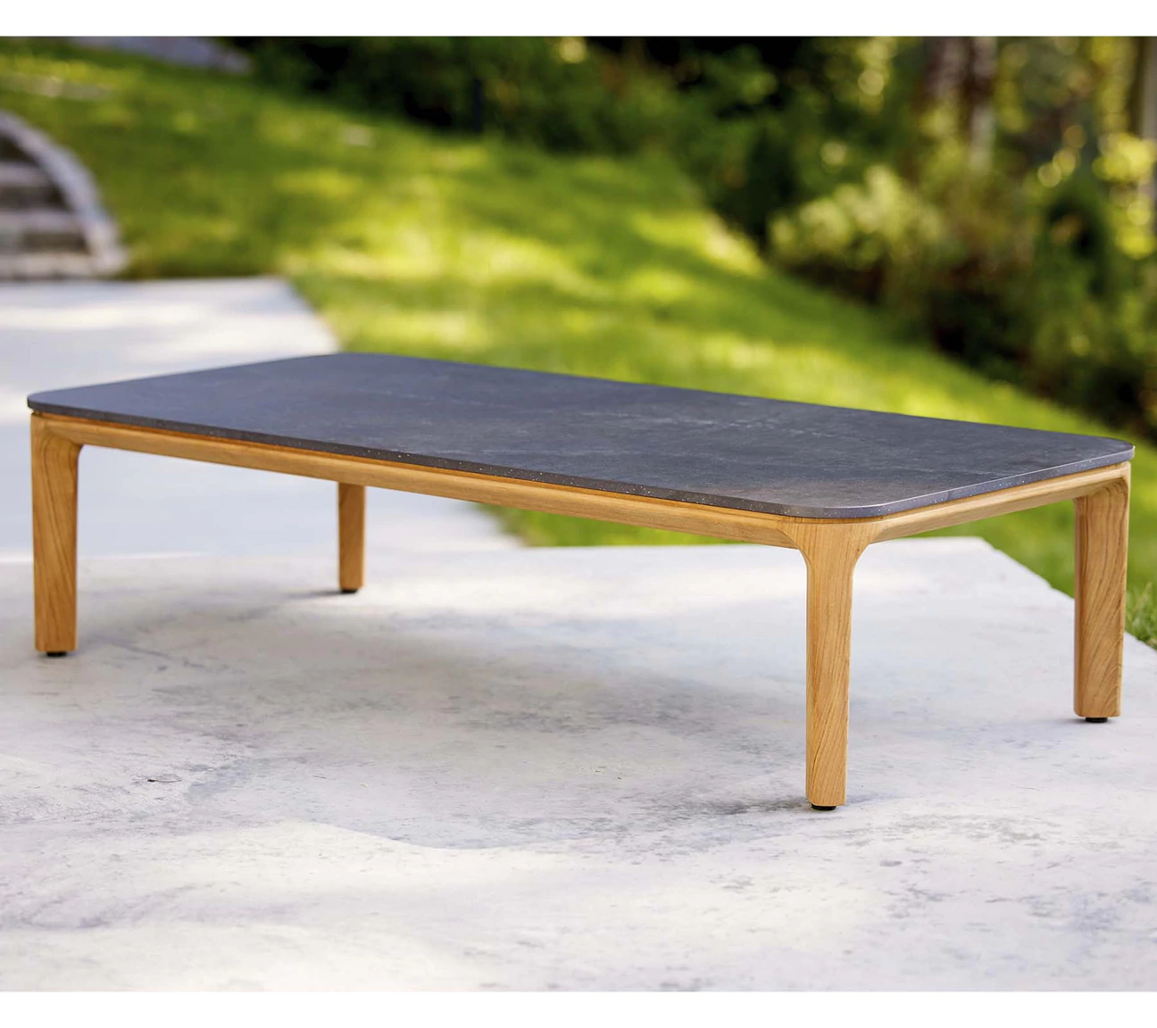 Ogrodowy stolik kawowy ASPECT łączy solidną i stabilną konstrukcje wykonaną z drewna teakowego z ceramicznym blatem różnych wersjach kolorystycznych.