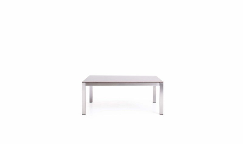 Stal nierdzewna w tych stolikach jest dostępna w połączeniu z blatem ceramicznym lub HPL.