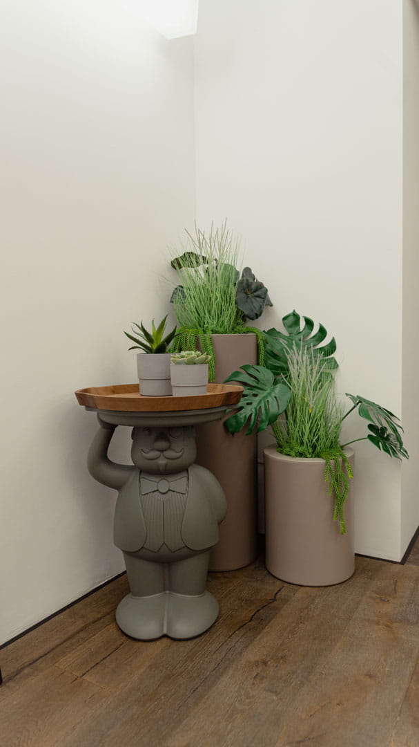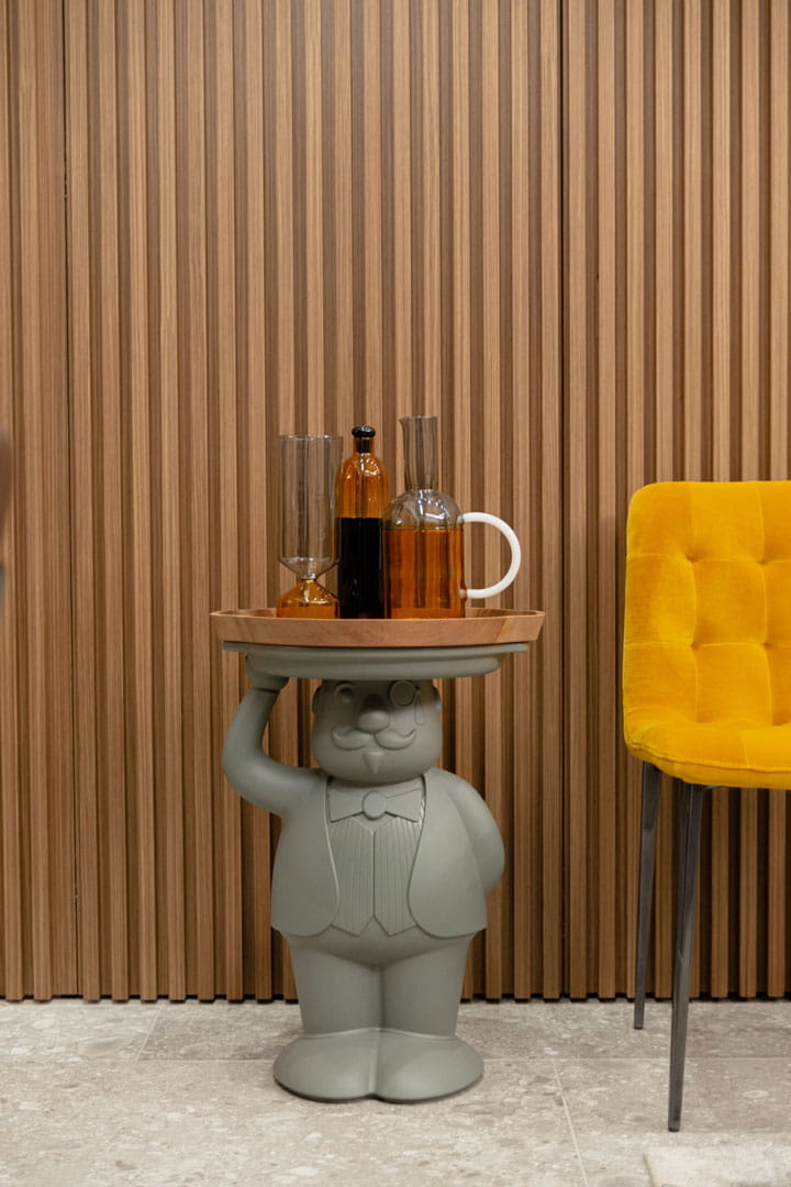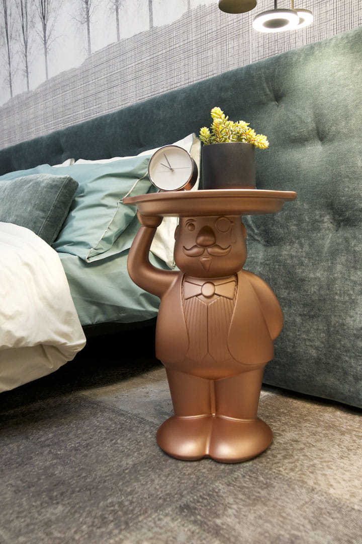 Ten stolik boczny doskonale sprawdzi się w niezobowiązujących aranżacjach, bądź wprowadzi odrobinę humoru i zadba o etykietę wśród Twoich gości.