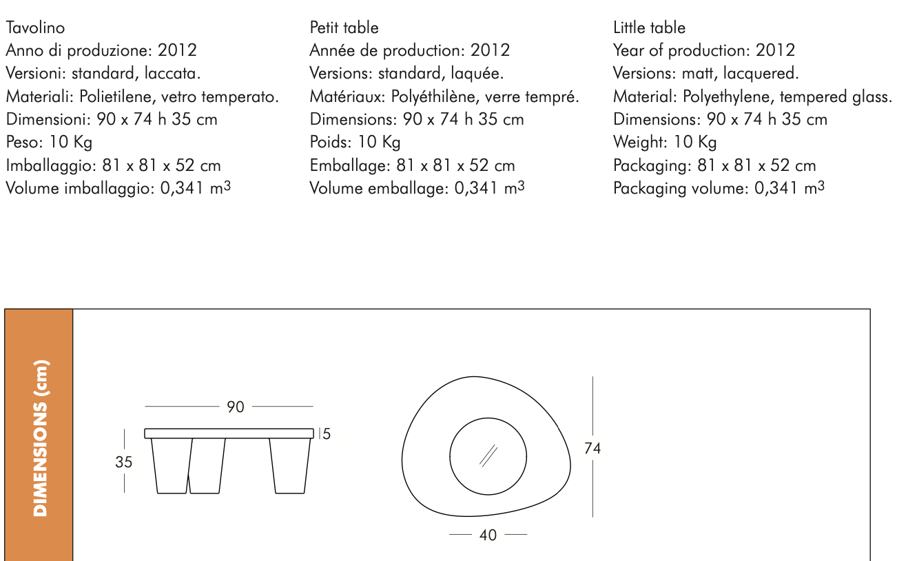Jako detal, który dodaje odrobinę powagi dodane została hartowana szyba, lecz nogi są olbrzymie i zabawne co wyróżnia tą kolekcję.