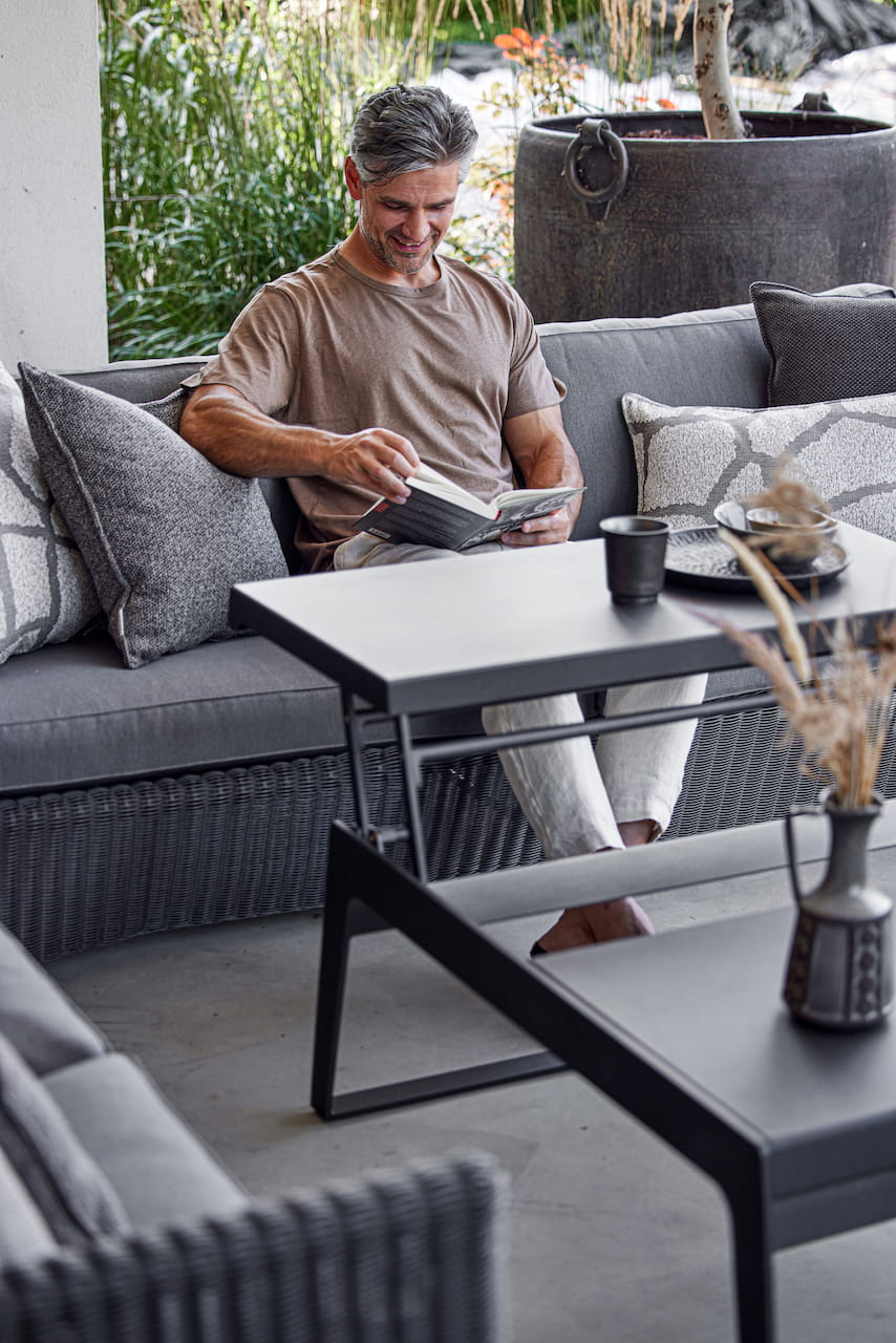 Stolik kawowy serii Chill-out jest wykonany z aluminium w kolorze czarnym Lava Grey: