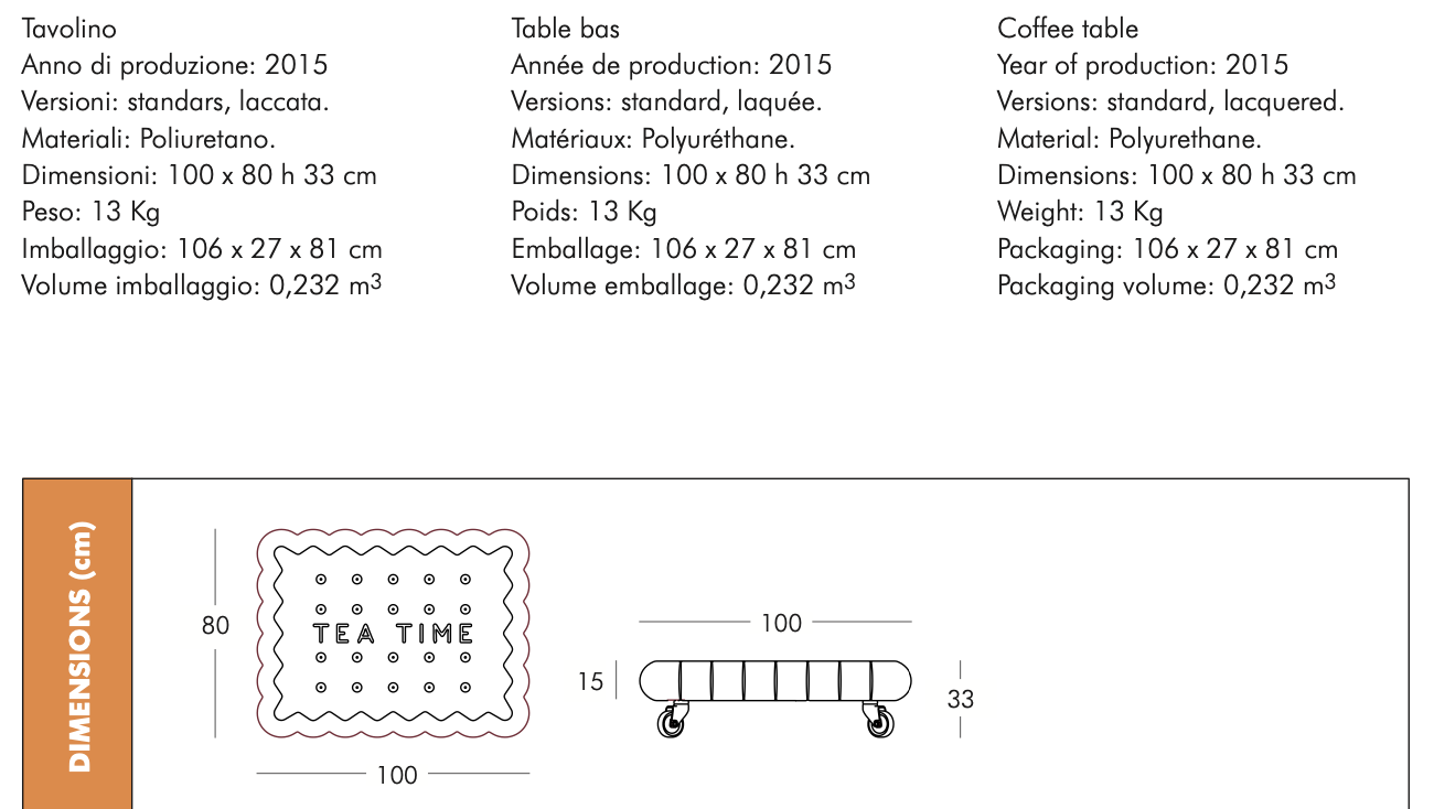 To stolik kawowy przeznaczony zarówno do wnętrz jak i ogrodów, cechuje go humorystyczny design wzorowany herbatnikiem.